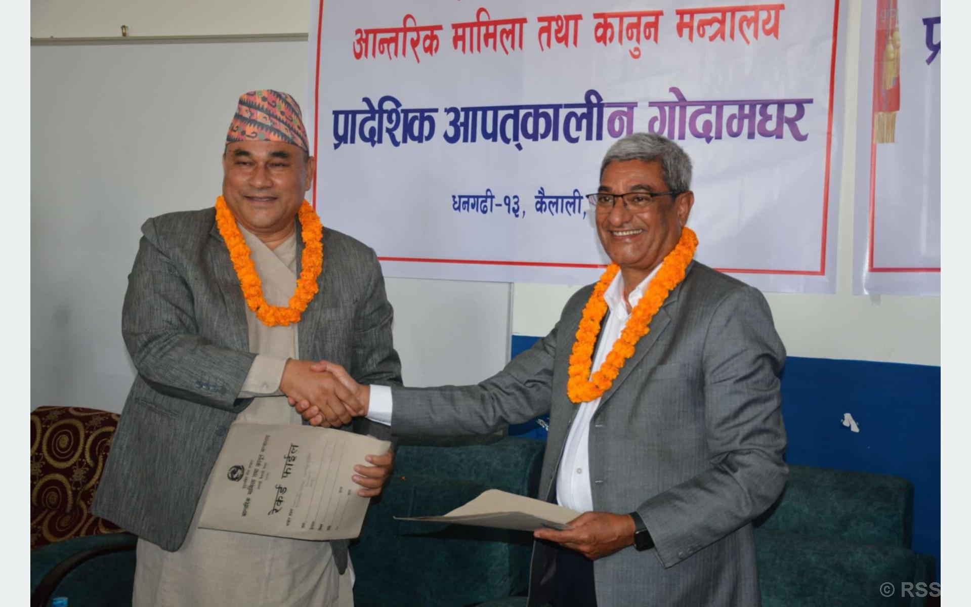 सो अवसरमा गृहमन्त्री लेखकले प्रादेशिक आपतकालीन गोदामघर सुदूरपश्चिम प्रदेशका मुख्यमन्त्री कमलबहादुर शाहलाई हस्तान्तरण गर्नुभयो । कार्यक्रममा विपद् न्यूनिकरण तथा व्यवस्थापन प्राधिकरणका कार्यकारी प्रमुख डा भीष्मकुमार भुषाललगायतको उपस्थिति रहेको थियो ।