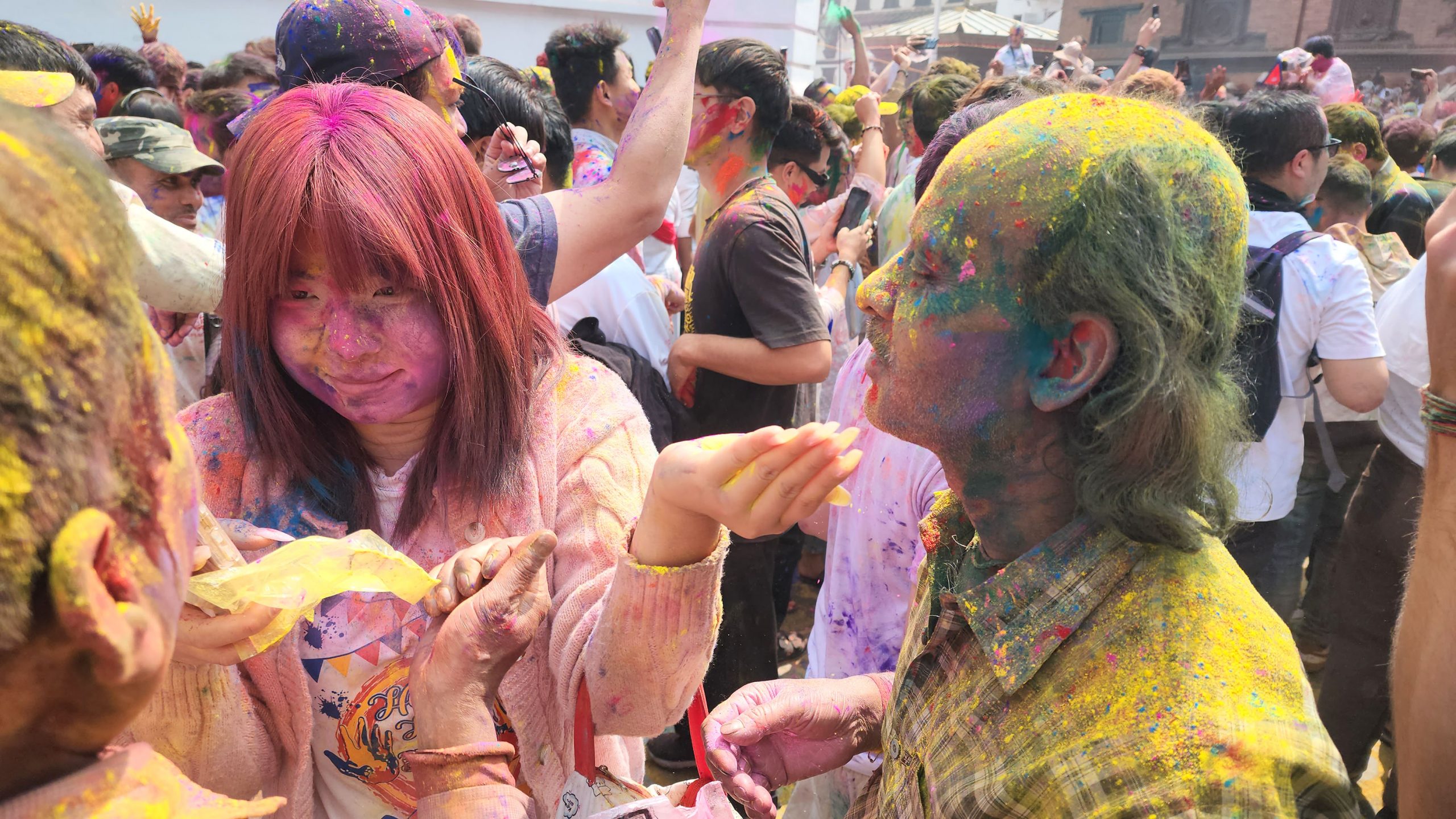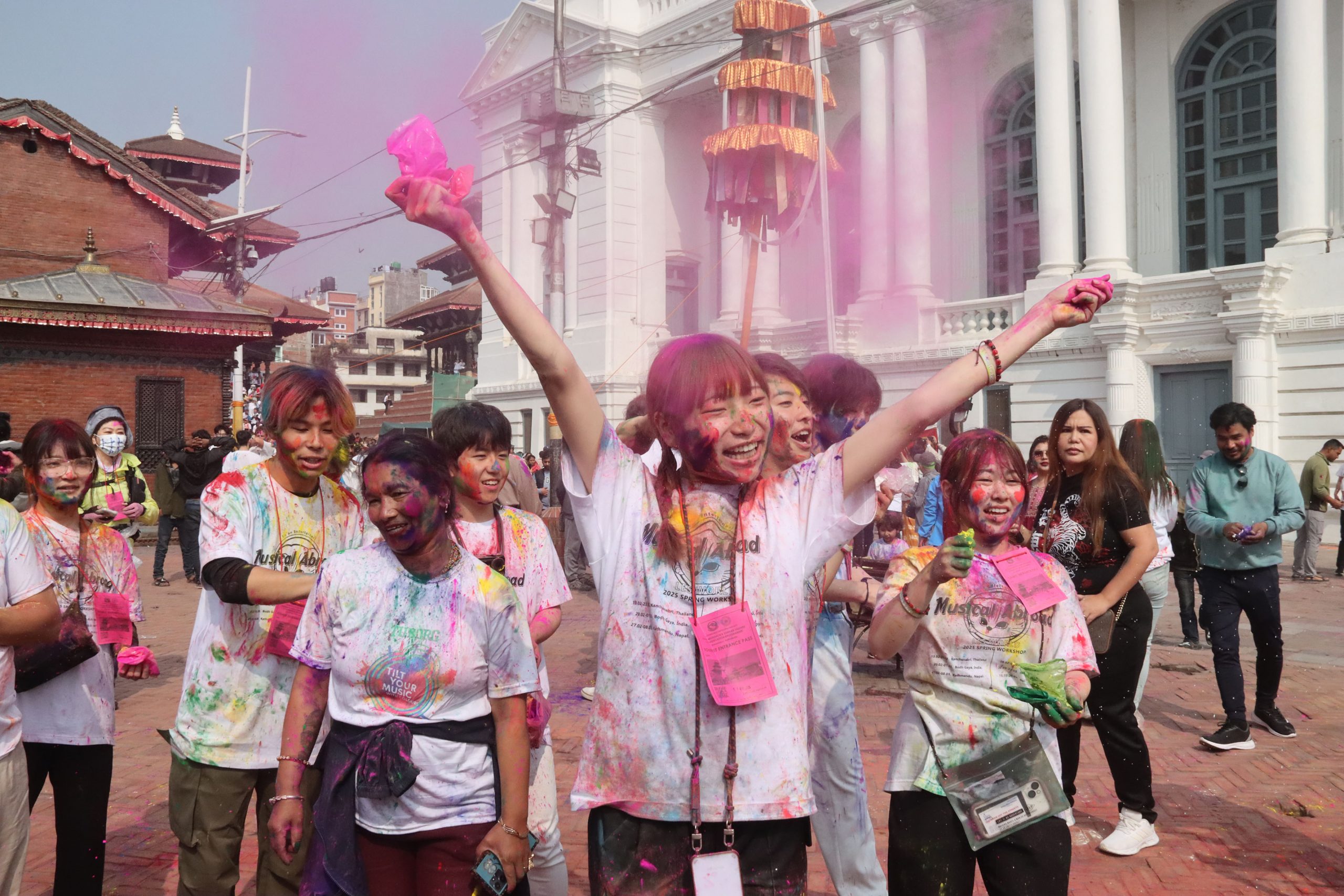 संस्कृति, सम्पदा र पर्यटनको दृश्याङ्कनका लागि नेपाल आएका १०० चिनियाँ फोटोग्राफरहरु होली पर्वका अवसरमा बिहीबार काठमाडौँको बसन्तपुरमा होली खेलेर मनोरञ्जन लिँदै ।