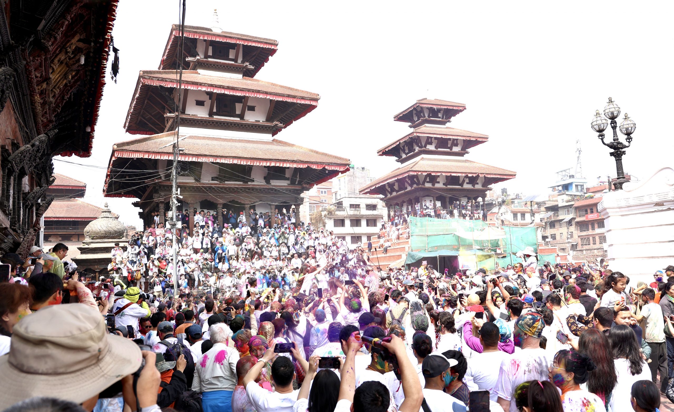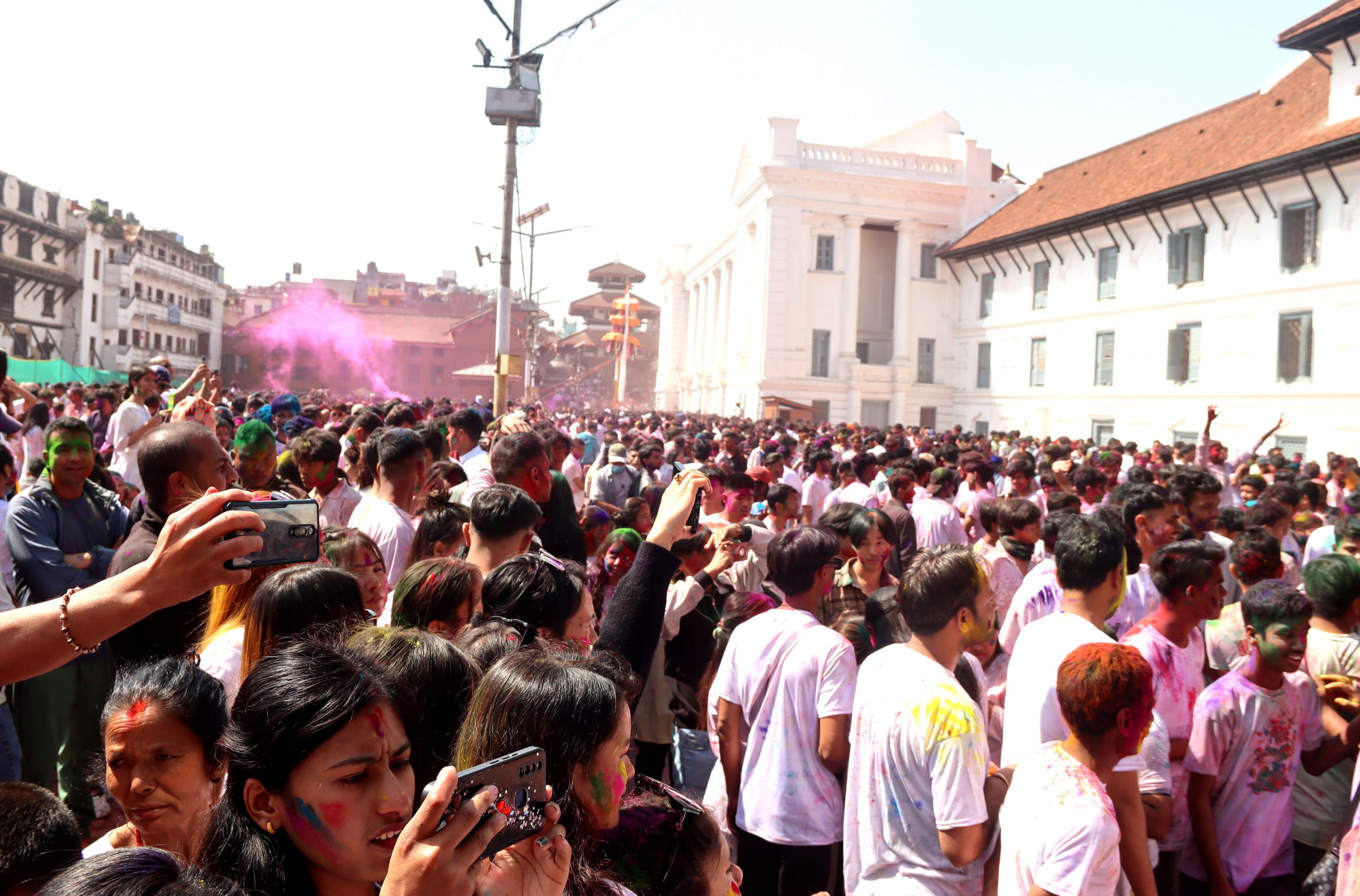फागु पूर्णिमाको दिन आज काठमाडौँको बसन्तपुरमा होली खेलेर मनोरञ्जन लिन आएका सर्वसाधारणको घुइँचो ।
