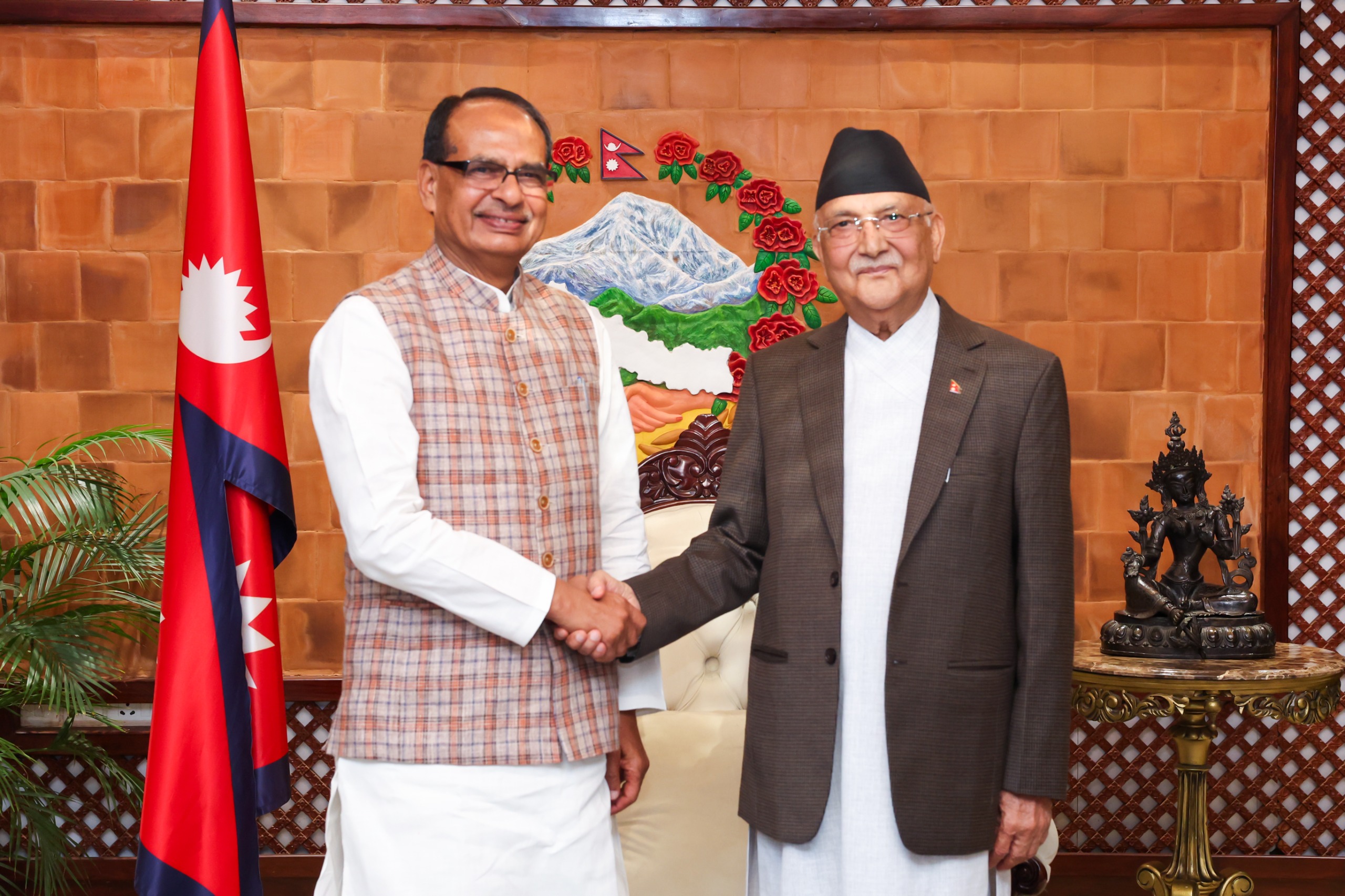 काठमाडौँ– प्रधानमन्त्री केपी शर्मा ओलीसँग नेपाल भ्रमणमा रहनुुभएका भारतका कृषि तथा किसान कल्याणमन्त्री शिवराज सिंह चौहानले आज शिष्टाचार भेट गर्नुभएको छ ।