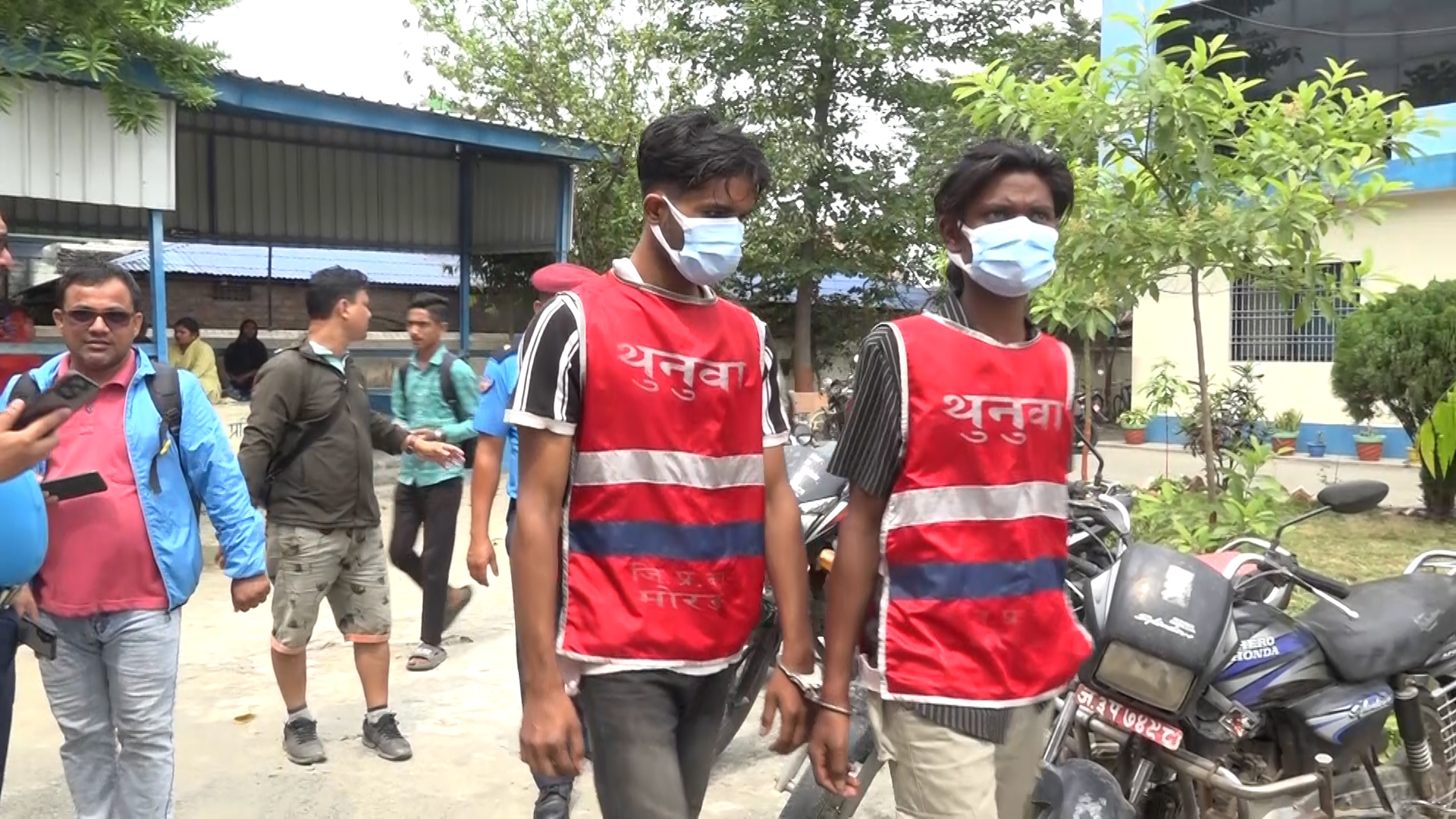 पक्राउ पर्नेमा विराटनगर महानगरपालिका वडा नं. १७ का सोयल आलम र नौसाद अन्सारी रहेका छन् । उनीहरुलाई चैत्र २६ गते अस्पताल चोकबाट कालो रंगको होण्डा सिबी साइन मोटरसाइकल चोरेर भाग्दै गर्दा पक्राउ गरिएको मोरङ प्रहरीका प्रवक्ता प्रहरी नायब उपरीक्षक वेद प्रसाद जोशीले जानकारी दिनुभयो ।