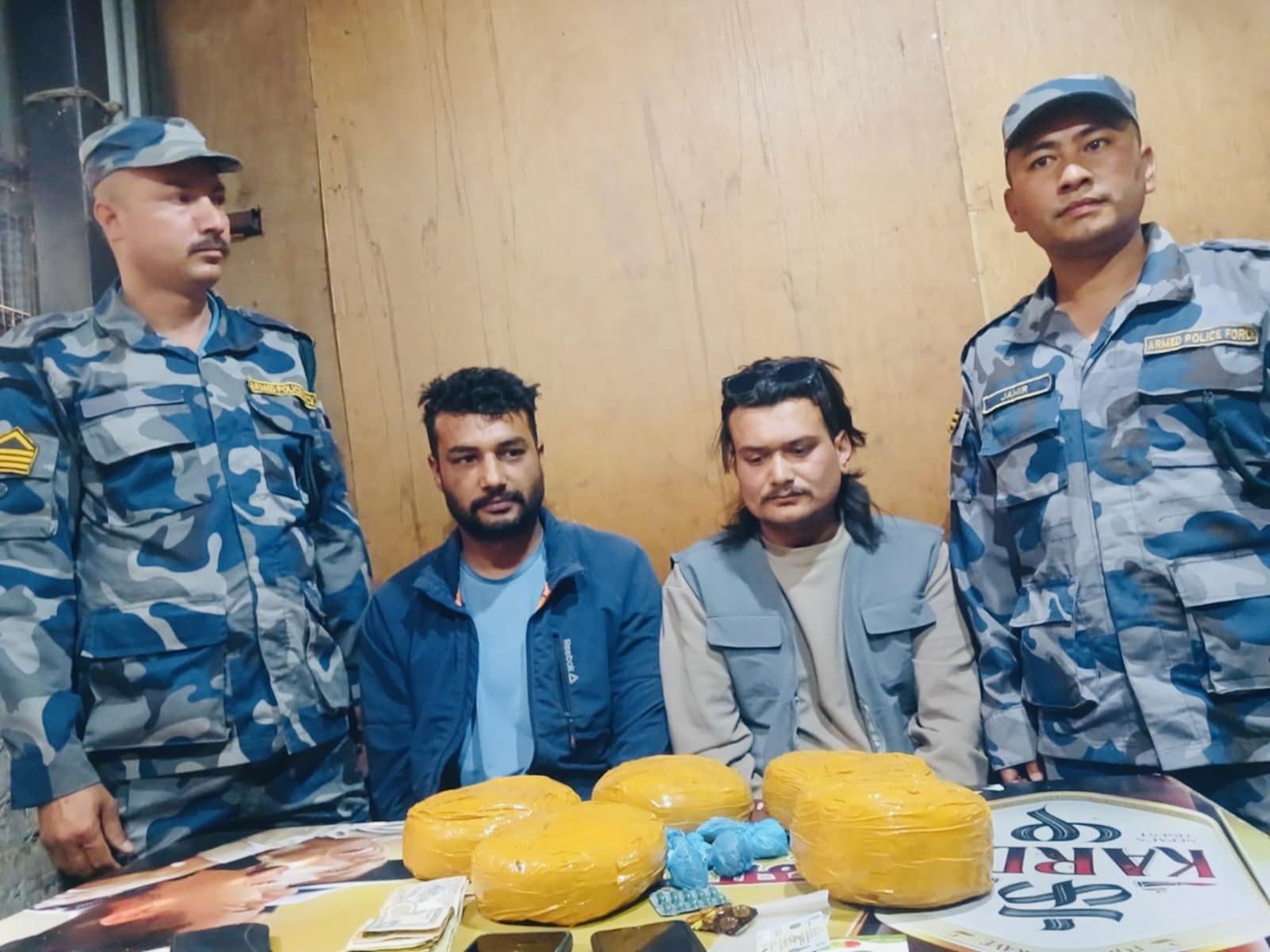 पक्राउ परेकाहरूमा धुलिखेल नगरपालिका-०६ का २८ वर्षीय अमृत भण्डारी र धुलिखेल नगरपालिका-०४ का ३० वर्षीय श्रीकृष्ण सत्याल रहेको सशस्त्र प्रहरी बल गण नम्बर १५ हेडक्वार्टरका गणपति प्रहरी उपरीक्षक प्रेम प्रसाईंले जानकारी दिनुभयो । उहाँका अनुसार पक्राउ परेकाहरूबाट पोल्यान्ड नामक लागूऔषध ५ केजी १०० ग्राम बरामद भएको छ । उनीहरूलाई आवश्यक अनुसन्धान तथा कारबाहीका लागि सम्बन्धित निकायमा बुझाइएको सशस्त्र प्रहरी बलले जनाएको छ।