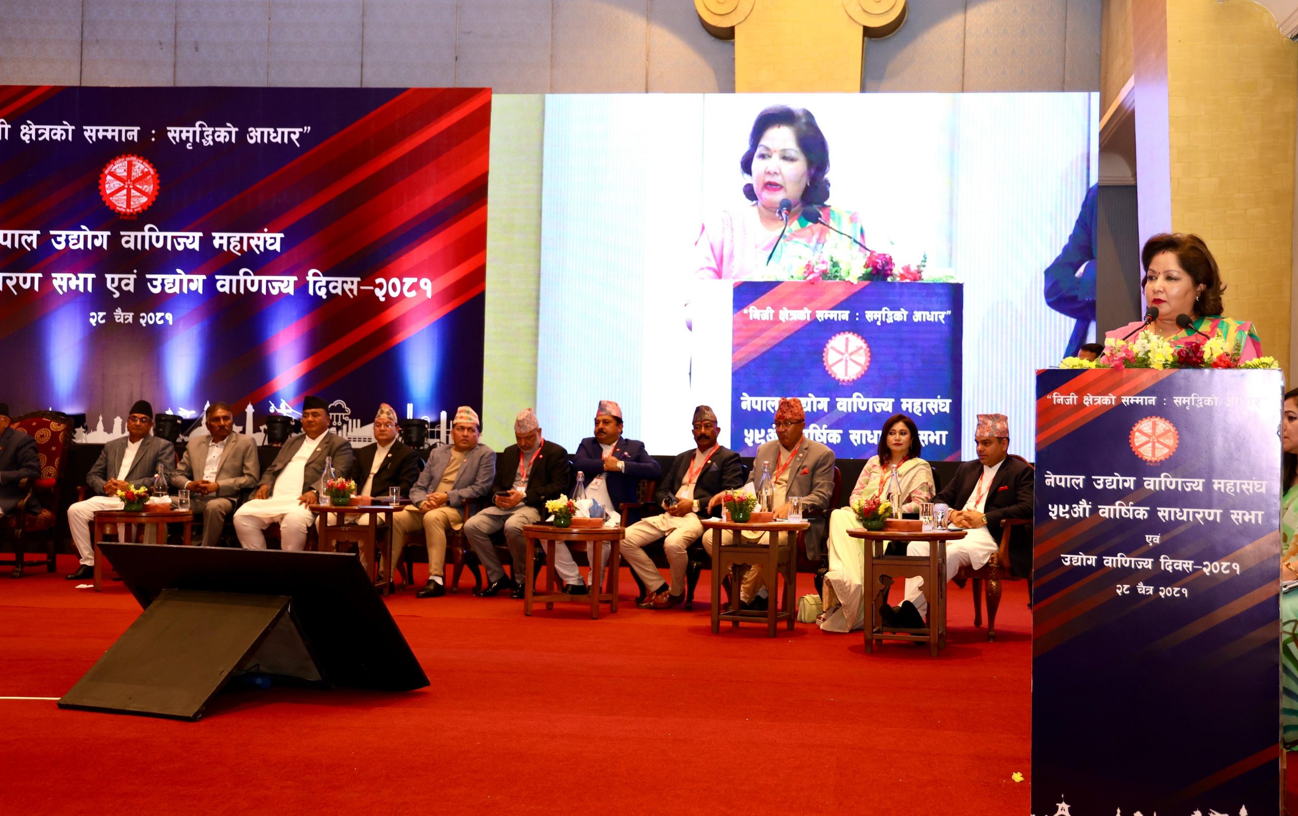 नेपाल उद्योग वाणिज्य महासंघको ५९ औँ बार्षिक साधारणसभाका अवसरमा आज महासंघद्वारा आयोजित कार्यक्रमलाई सम्बोधन गर्दै उहाँले नेपालमा लगानीका अधिक सम्भावनाहरु रहेकाले वैदेशिक लगानी भित्र्यान सरकारले आर्थिक कूटनीतिलाई बलियो बनाएर अघि बढ्ने स्पष्ट गर्नुभयो ।