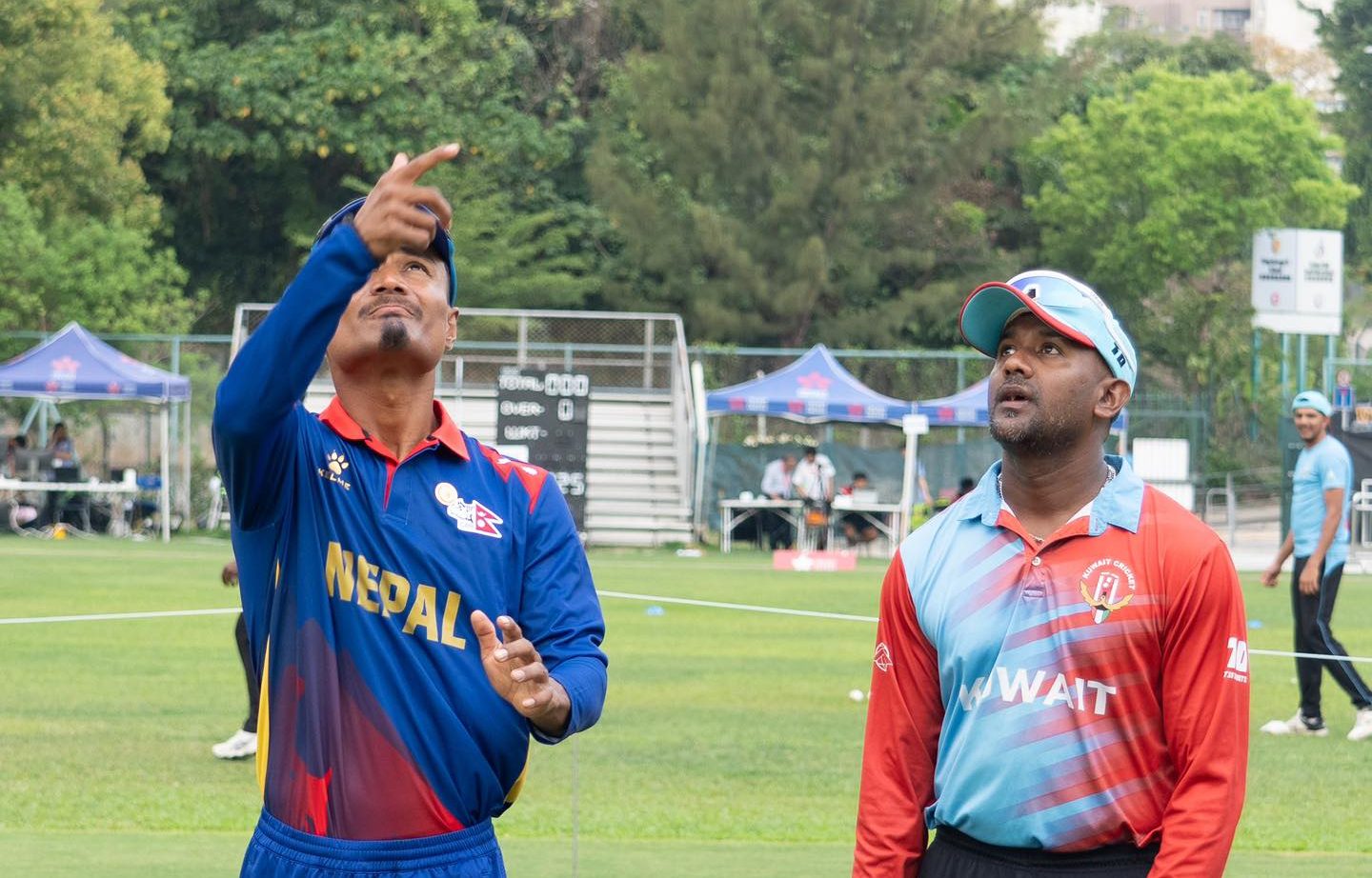 काठमाडौँ – हङकङमा जारी चारदेशीय टी९२० आई शृङ्खलाको उपाधिका लागि आज नेपालर कुवेत भिड्दैछन् । केही बेरअघि हङकङको टिन क्वाङ रोड रिक्रिएशन मैदानमा भएको टसमा नेपालले टस जितेर पहिले बलिङ रोजेको छ ।