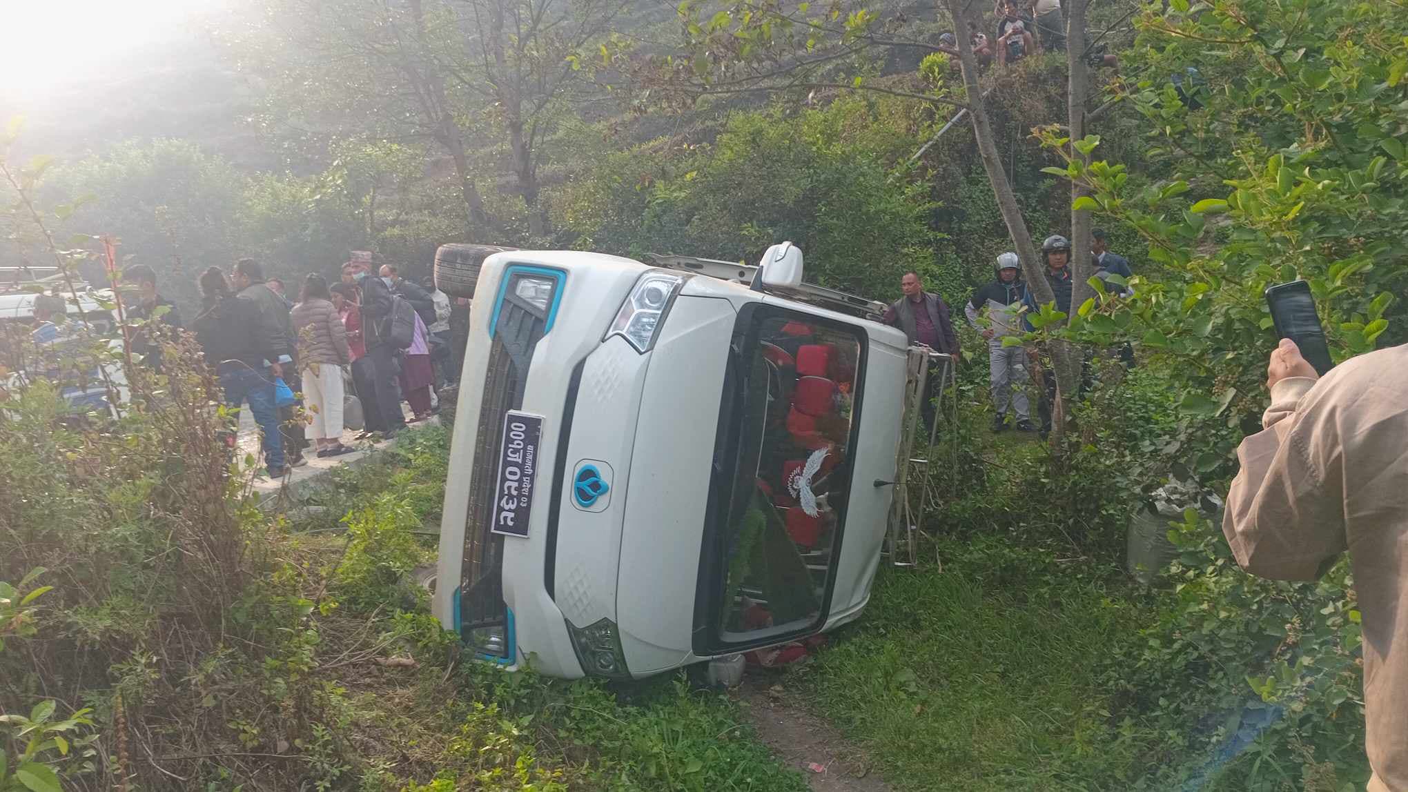 विद्युतीय माइक्रोबस दुर्घटना हुँदा दुई बालबालिकासहित १० जना घाइते