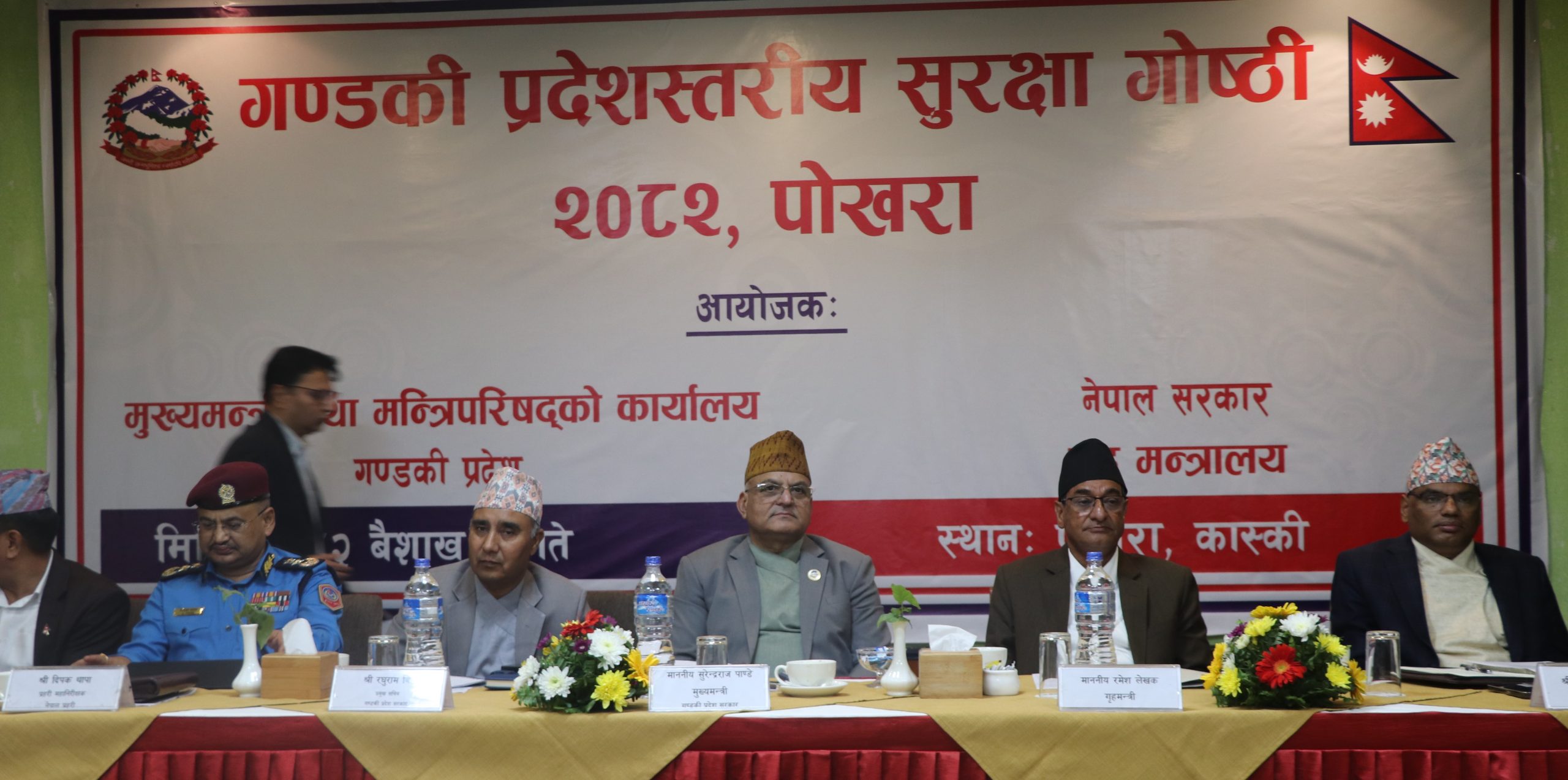 सुरक्षा गोष्ठीमा प्रदेशअन्तर्गत सबै जिल्लाका सुरक्षा समितिका पदाधिकारीहरूको उपस्थिति छ । मन्त्री लेखकले आजै सङ्घ मातहत रहेको आपतकालीन गोदामघर गण्डकी प्रदेश सरकारलाई हस्तान्तरण गर्नुभएको थियो । एक समारोहका बीच मन्त्री लेखकले प्रदेशका मुख्यमन्त्री पाण्डेलाई आपत्कालीन गोदामघर हस्तान्तरण गर्नुभएको हो ।