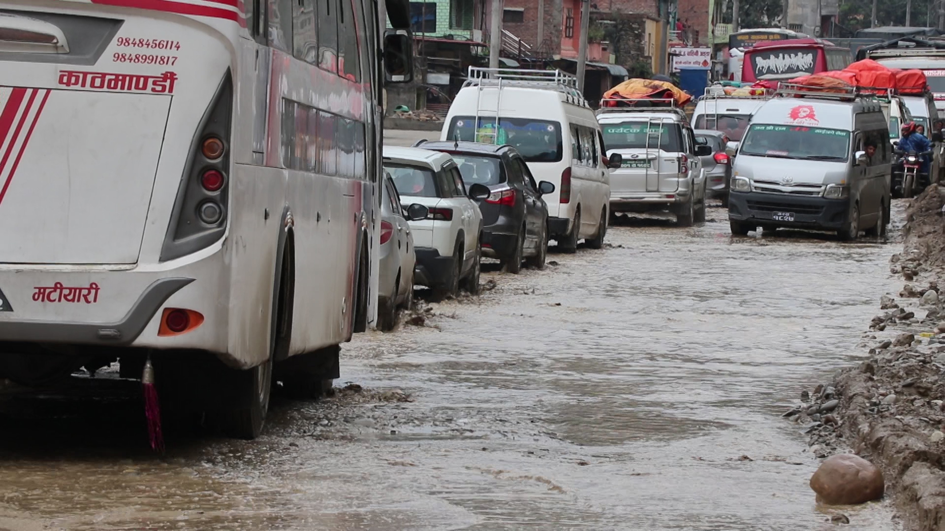 पानी नपरे धुलो र पानी परे हिलोक कारण सास्ती भोग्नु परेको यात्रुहरुको गुनासो छ ।
