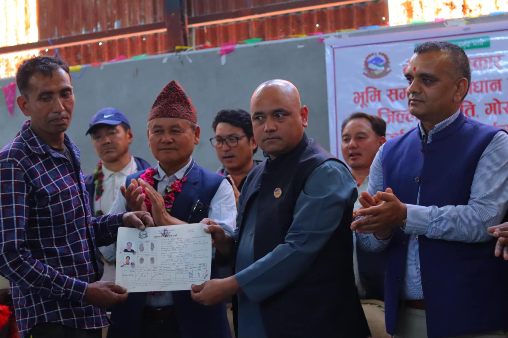 गोरखा- गोरखाको धार्चे गाउँपालिकाका भूमिहीन दलित घरपरिवारलाई जग्गाधनी लालपुर्जा वितरण गरिएको छ ।