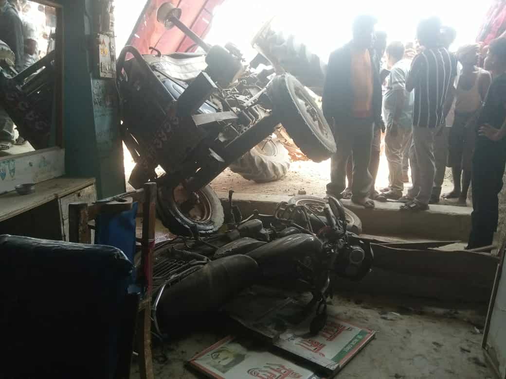 मिर्चैयामा तीव्र गतिमा आएका ट्रैक्टर पसल भित्र छिर्दा चार जना घाइते
