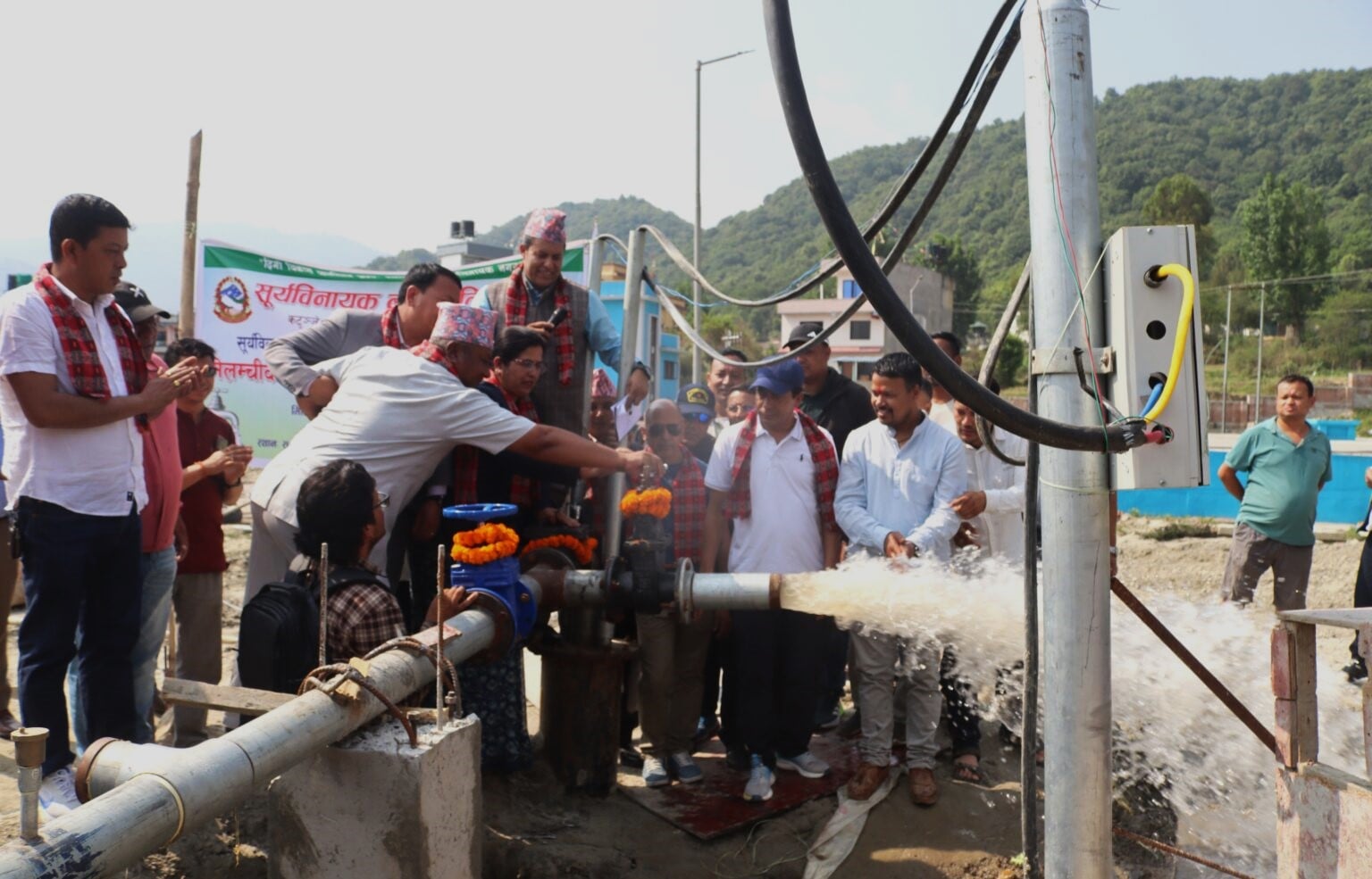 भक्तपुर- सूर्यविनायक नगरबासीले बल्ल मेलम्चीको खानेपानी पिउन पाएका छन् । बागमती प्रदेशका स्वास्थ्यमन्त्री किरण थापाले सूर्यविनायक नगरपालिका वडा नं. ६ स्थित पाण्डुबजार हाइटमा निर्मित ८० लाख लिटर क्षमताको ट्यांकीबाट लिफ्टिङ सिस्टमबाट सुवर्णेश्वर खानेपानी ट्यांकीमा पानी खसालेर वितरण कार्यको शुभारम्भ गरेसँगै नगरबासीको चाहना पुरा भएको हो ।