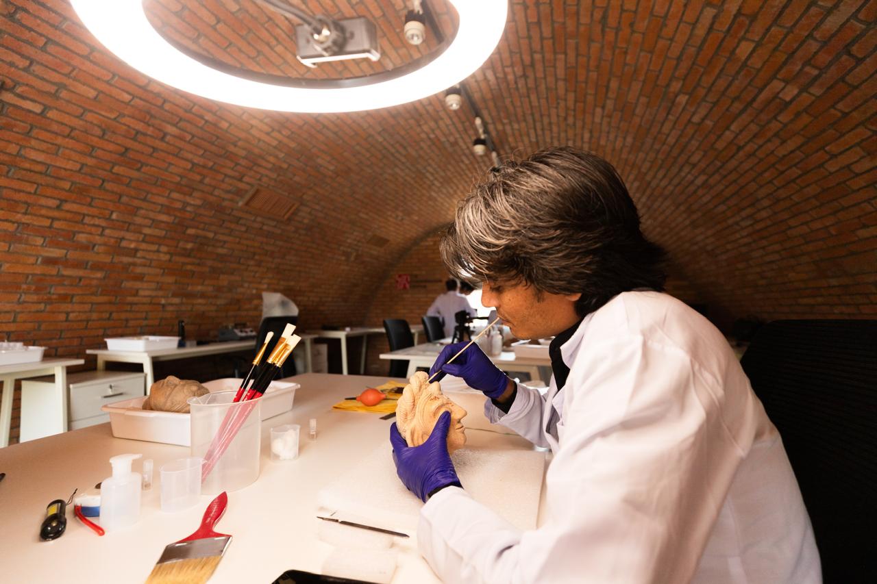 फोटो क्यापसन स् लुम्बिनी संग्रहालय संरक्षण केन्द्रमा पुरातात्विक वस्तुको संरक्षण गर्दै अध्येता ।