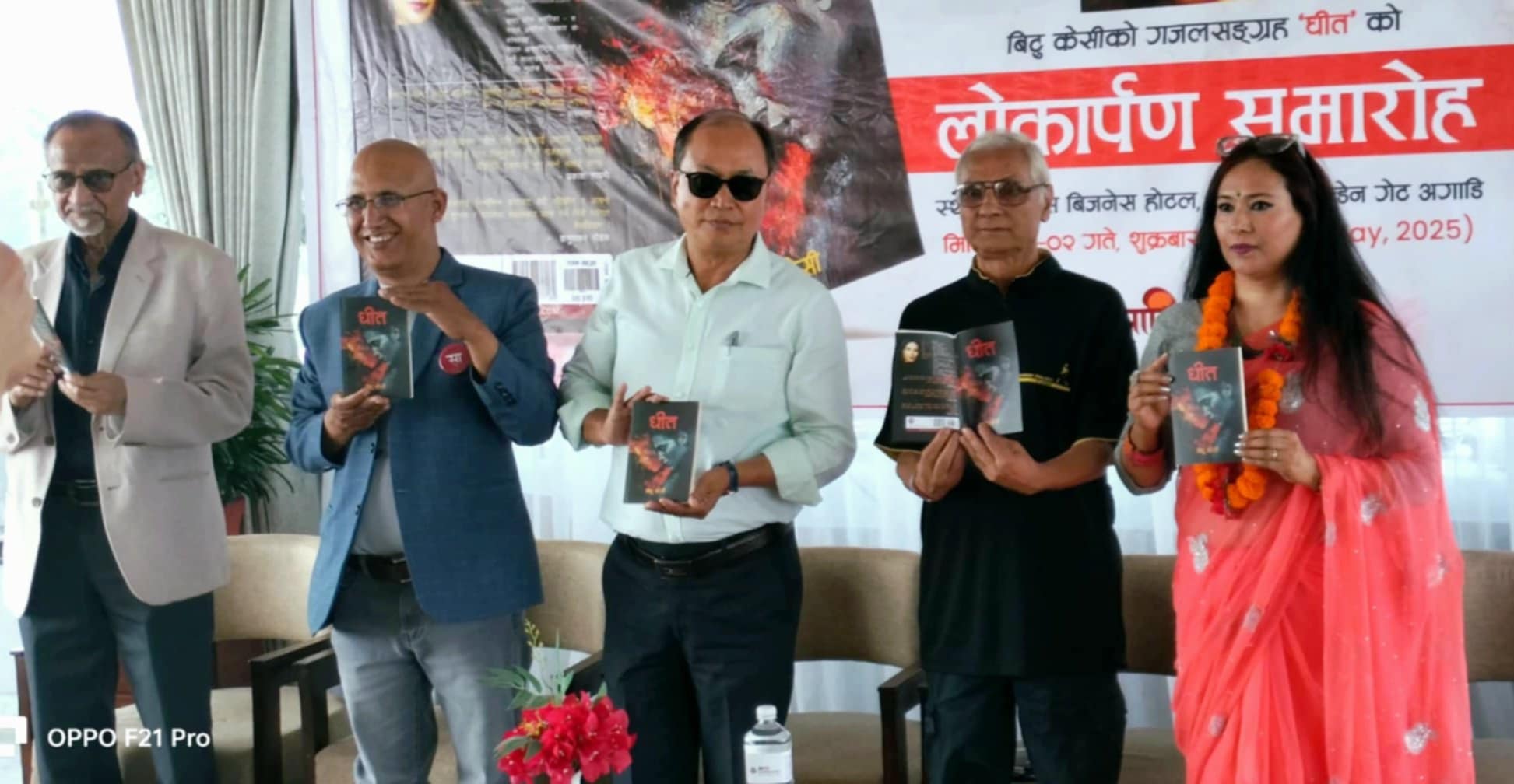 काठमाडौँ – शुक्रवार एक समारोह वीच साहित्यकार बिटु केसीको “धीत” लोकार्पण भयो । चर्चित गीतकार एवं वरिष्ठ अर्थशास्त्री डा विश्वम्भर प्याकुरेल , वरिष्ठ गजलकार ज्ञानुवाकर पौडेल , वरिष्ठ चलचित्र निर्देशक , साहित्यकार एवं पत्रकार प्रकाश सायमी , साहित्य पोस्टका प्रधान सम्पादक अश्विनी कोइराला र गजलकार बिटु केसीले संयुक्त रूपमा ” धीत ” गजलसंग्रहको लोकार्पण गर्नुभयो ।