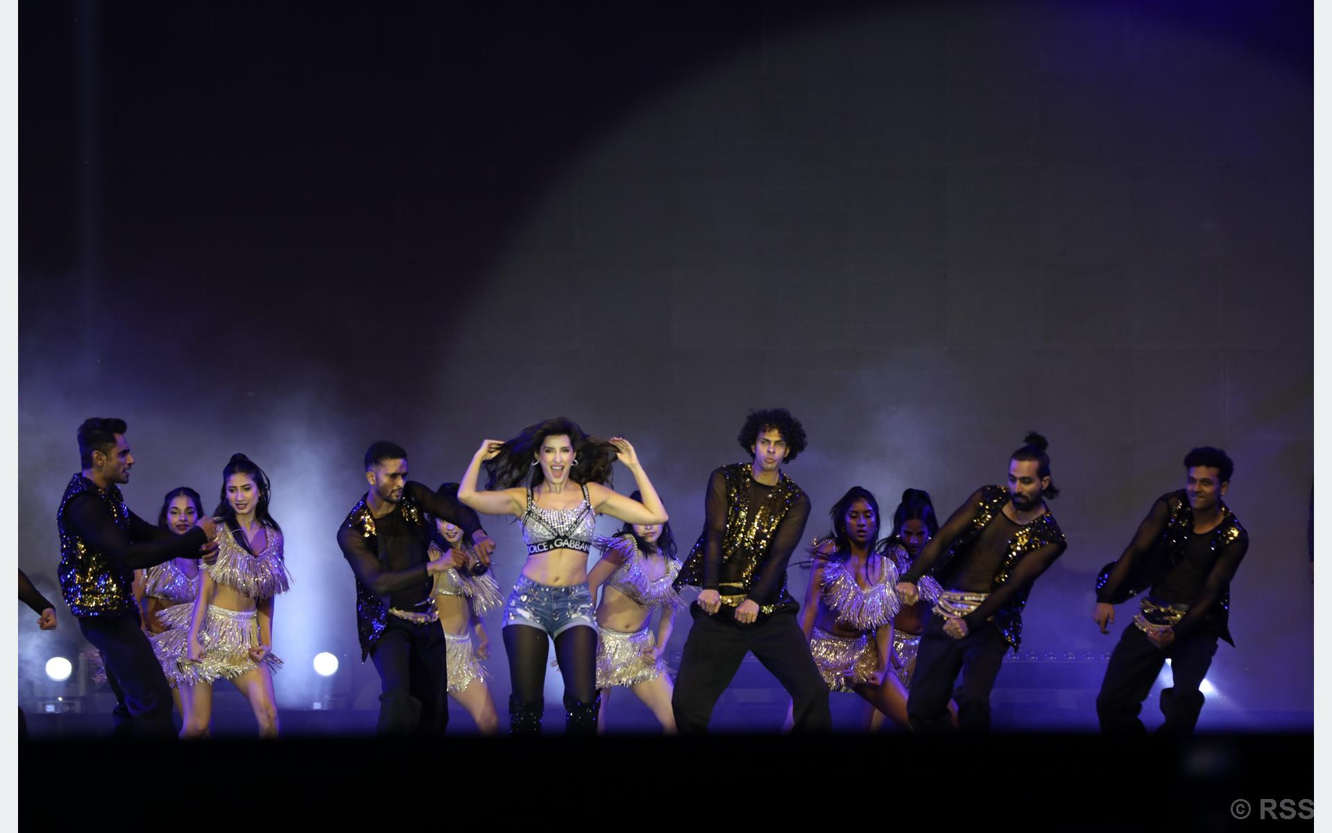 “म अभिनेत्री फतेहीको ठूलो प्रशंसक हुँ । मैले उहाँको हरेक गीतको नृत्यलाई मञ्च वा श्रव्यदृश्यमार्फत प्रस्तुत गरेको छु । आजसँगै नाच्न पाउँदा निकै उत्साहित छु”, सिटौलाले भन्नुभयो । आफ्नो २३ सदस्यीय नृत्य टोलीसँग करिब ४० मिनेटसम्म अभिनेत्री फतेहीले लोकप्रिय गीतमा ऊर्जावान् प्रस्तुति दिनुभयो । उहाँ आफैँले गाउँनुभएको ‘स्नेक डान्स’ बाट प्रस्तुतिको सुरुआत गर्दै ‘कुसु कुसु’, ‘ओ साकी साकी’, ‘नाच मेरी रानी’ जस्ता गीतहरूमा दर्शकलाई नचाउनुभयो ।