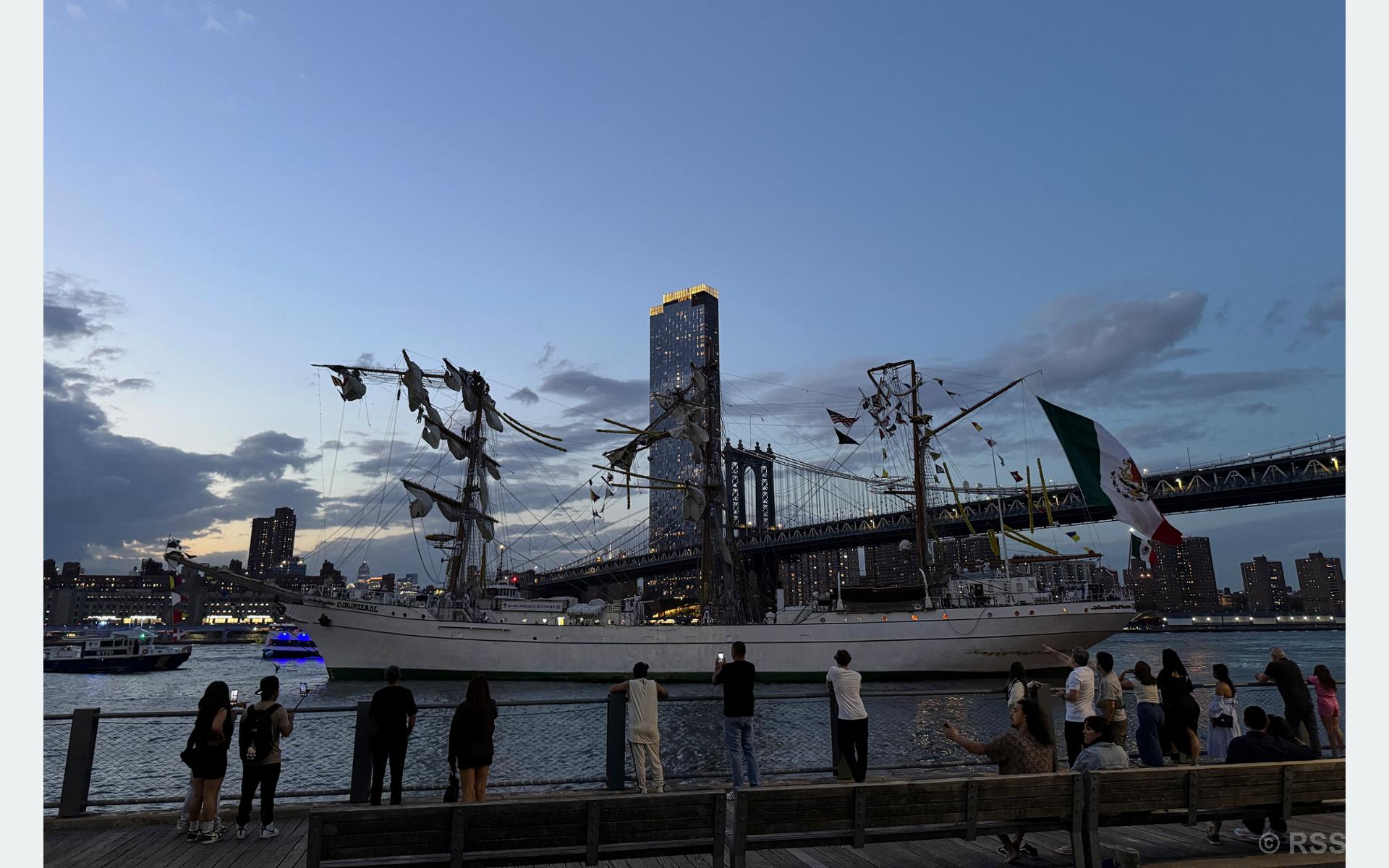 शनिबार राति न्युयोर्क शहरमा रहेको ब्रुकलिनको पुलको खम्बामा ठोक्किँदा जहाजले आफ्ना तीनवटै मस्तुलहरू तोडेको थियो भने पुलमा बसी वसन्त ऋतुको साँझको आनन्द लिइरहेका दर्शकहरू भयभीत बनेका थिए ।