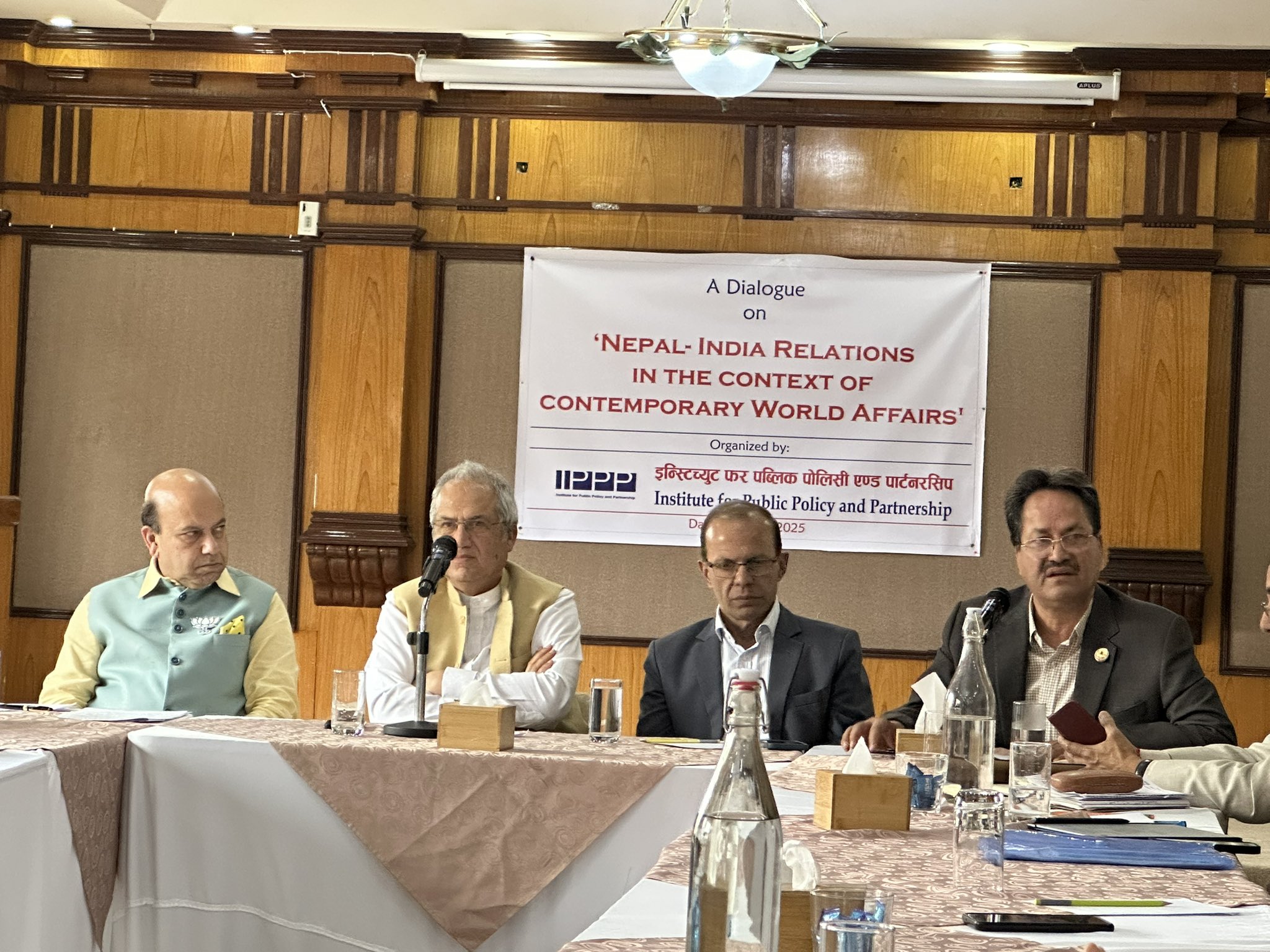 सार्वजनिक नीति तथा साझेदारी प्रतिष्ठानले ‘समसामयिक वैश्विक मामिला तथा नेपाल- भारत सम्बन्ध’ विषयमा आज काठमाडौँमा आयोजना गरेको छलफलमा उहाँले भारत र नेपालले मिलेर आफ्ना सिमानाको रक्षा गरेका तथा आपसमा खासै मनोमालिन्य नरहेको चर्चा गर्नुभयो । यस्ता केही समस्या भए पनि वार्ताका माध्यमबाट निरुपण गर्न सकिने उहाँको भनाइ थियो ।