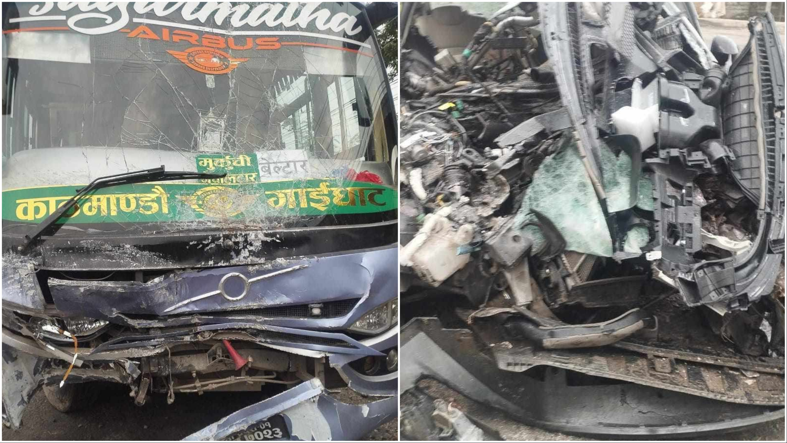 चितवनमा बस र कार ठक्कर खाँदा दुर्घटनाः एकजनाको मृत्यु