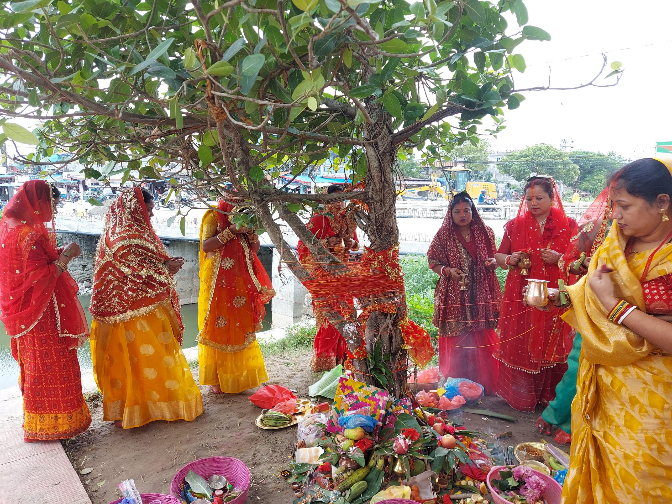 विवाहितताहरूले श्रीमान्को दीर्घायु र सुखका लागि मनाए वट सावित्री पर्व