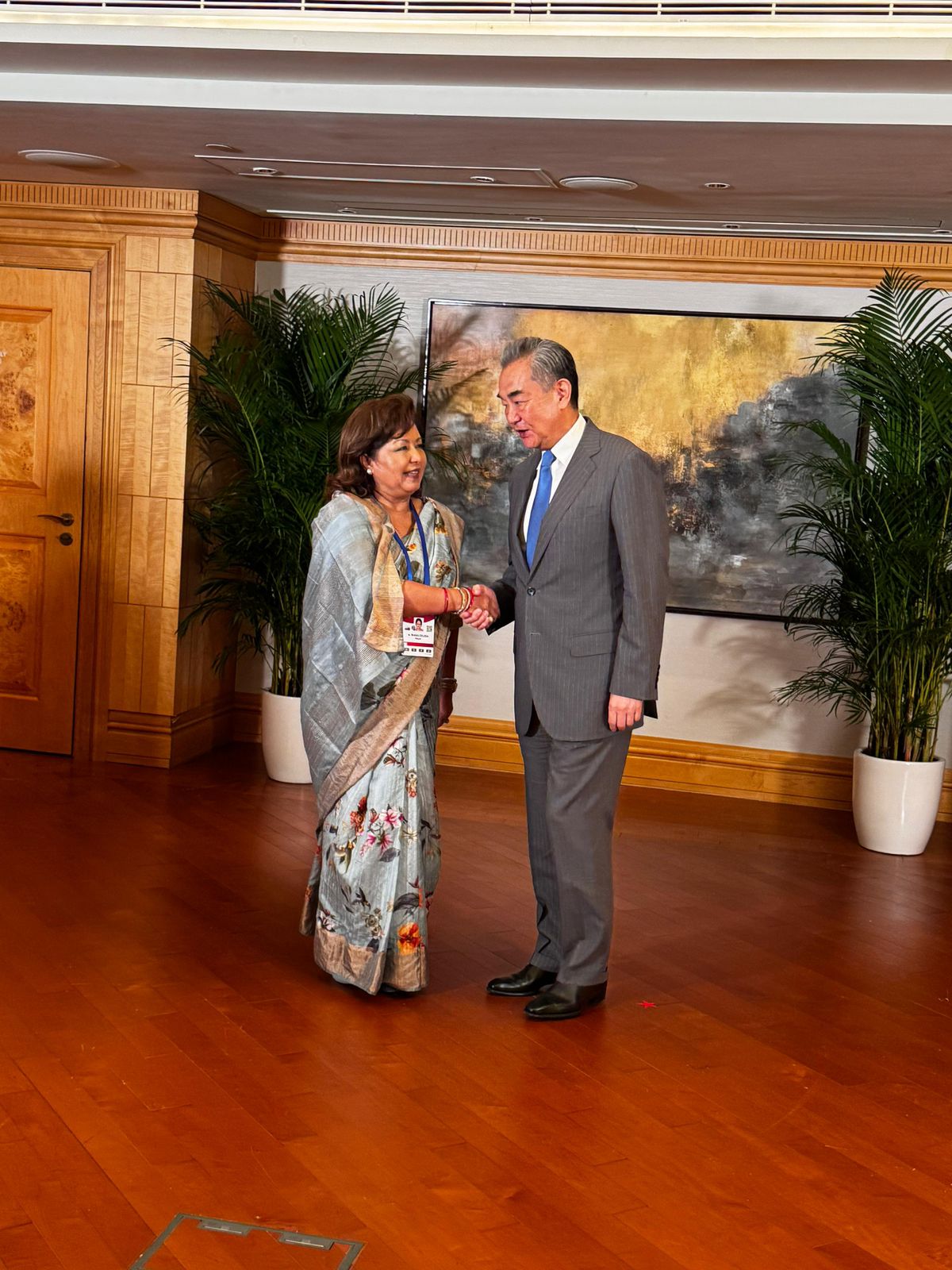 मन्त्री वाङले नेपालको कूटनीतिक क्षेत्रमा हाल मन्त्री डा राणाको नेतृत्वमा भइरहेका र अघि सारिएका कार्यक्रमहरूको प्रशंसा गर्दै विश्व महिला नेतृत्वसम्बन्धी फोरममा सहभागिताका लागि चीन सरकारका तर्फबाट मन्त्री डा राणालाई विशेष निमन्त्रणा पनि दिनुभएको थियो ।