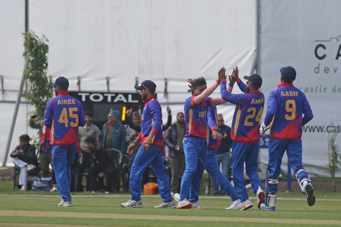 नेपालका लागि सोमपाल कामीले तीन विकेट लिए भने करण केसी, ललित राजवंशी र सन्दीप लामिछानेले समान दुई–दुई विकेट लिए ।