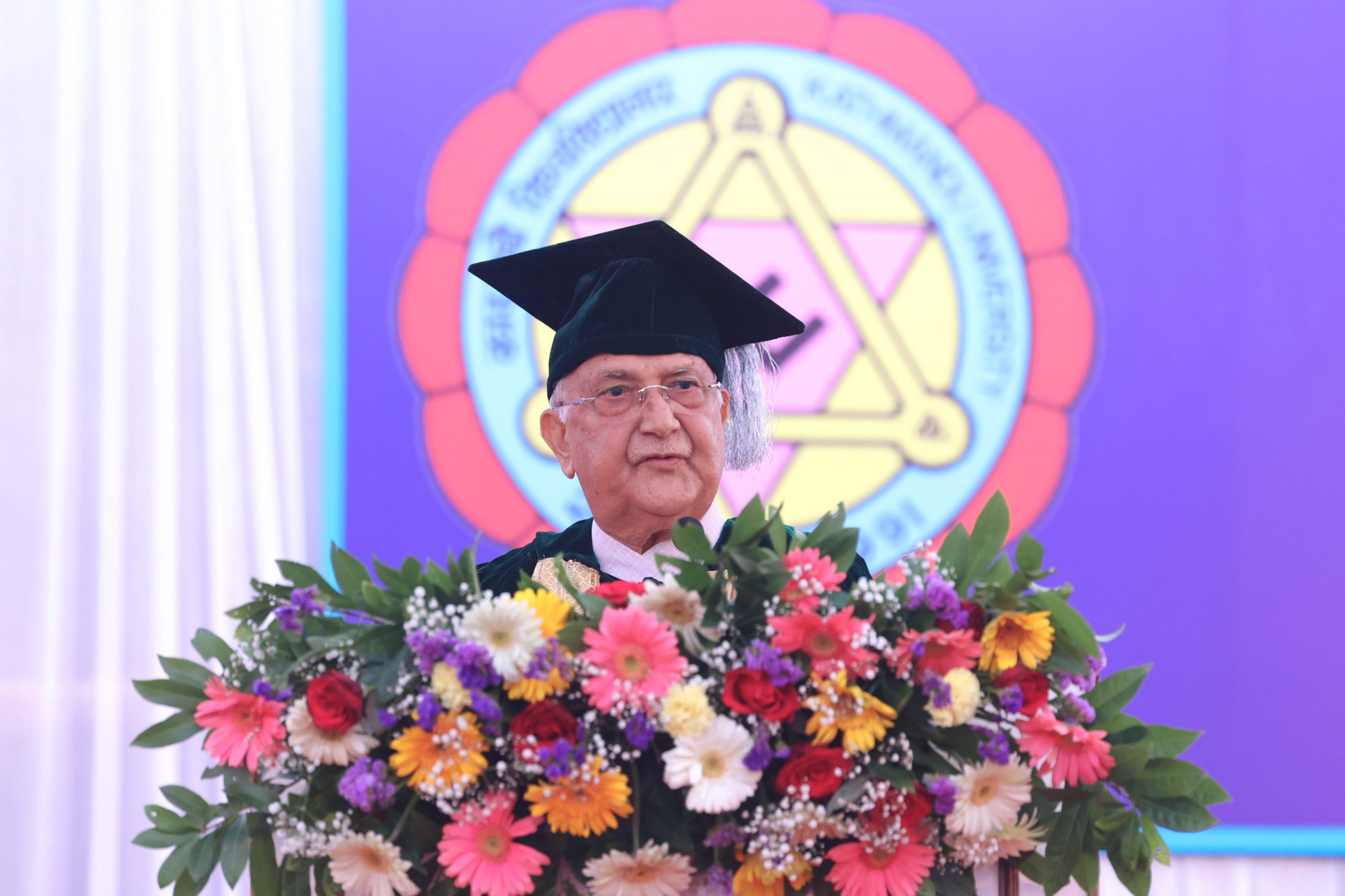धुलिखेलस्थित काठमाडौ विश्वविद्यालयको ३० औँ दीक्षान्त समारोह (दोस्रो चरण)लाई आज सम्बोधन गर्दै प्रधानमन्त्री ओलीले अब नेपालको परिचय ‘बहादुर’ मात्र नभई ‘इमान्दार, मेहनती र शालिन व्यक्तिको देश’ भनी स्थापित गराउनुपर्नेमा जोड दिँदै सीपयुक्त जनशक्तिले अनुसन्धान र नवप्रवर्तनमा लागेर देशको सेवा गर्नुपर्ने आग्रह गर्नुभयो ।