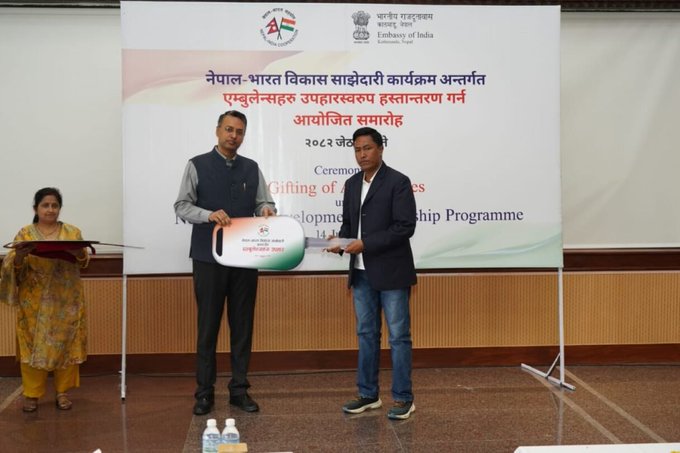 सिमकोट – सिमकोट गाउँपालिकालाई काठमाडौँस्थित भारतीय राजदूतावासले एम्बुलेन्स सहयोग गरेको छ । नेपाल–भारत विकास साझेदारी कार्यक्रमअन्तर्गत सिमकोट गाउँपालिकालाई शनिबार एम्बुलेन्स सहयोग प्राप्त भएको अध्यक्ष विजय भण्डारीले बताउनुभयो ।