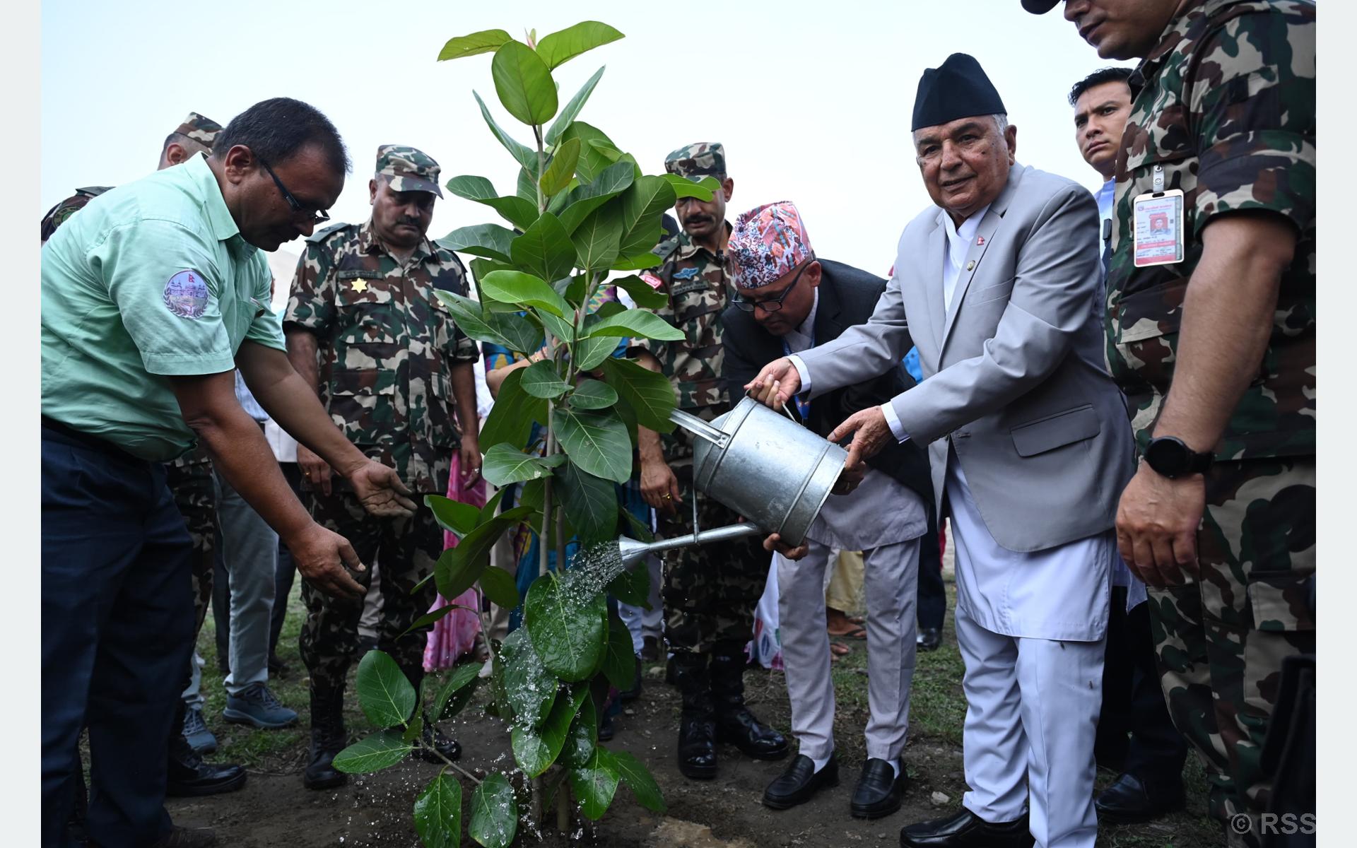 सो अवसरमा नवलपरासीको कावासोती नगरपालिका–३ मा अवस्थित अठ्ठाइस बिघा क्षेत्रको ज्योतीपुञ्ज सामुदायिक वनमा राष्ट्रपति पौडेलले बर र प्रथम महिला सविता पौडेलले पिपल रोपेर चुरे संरक्षण दिवस शुभारम्भ गर्नुभयो ।