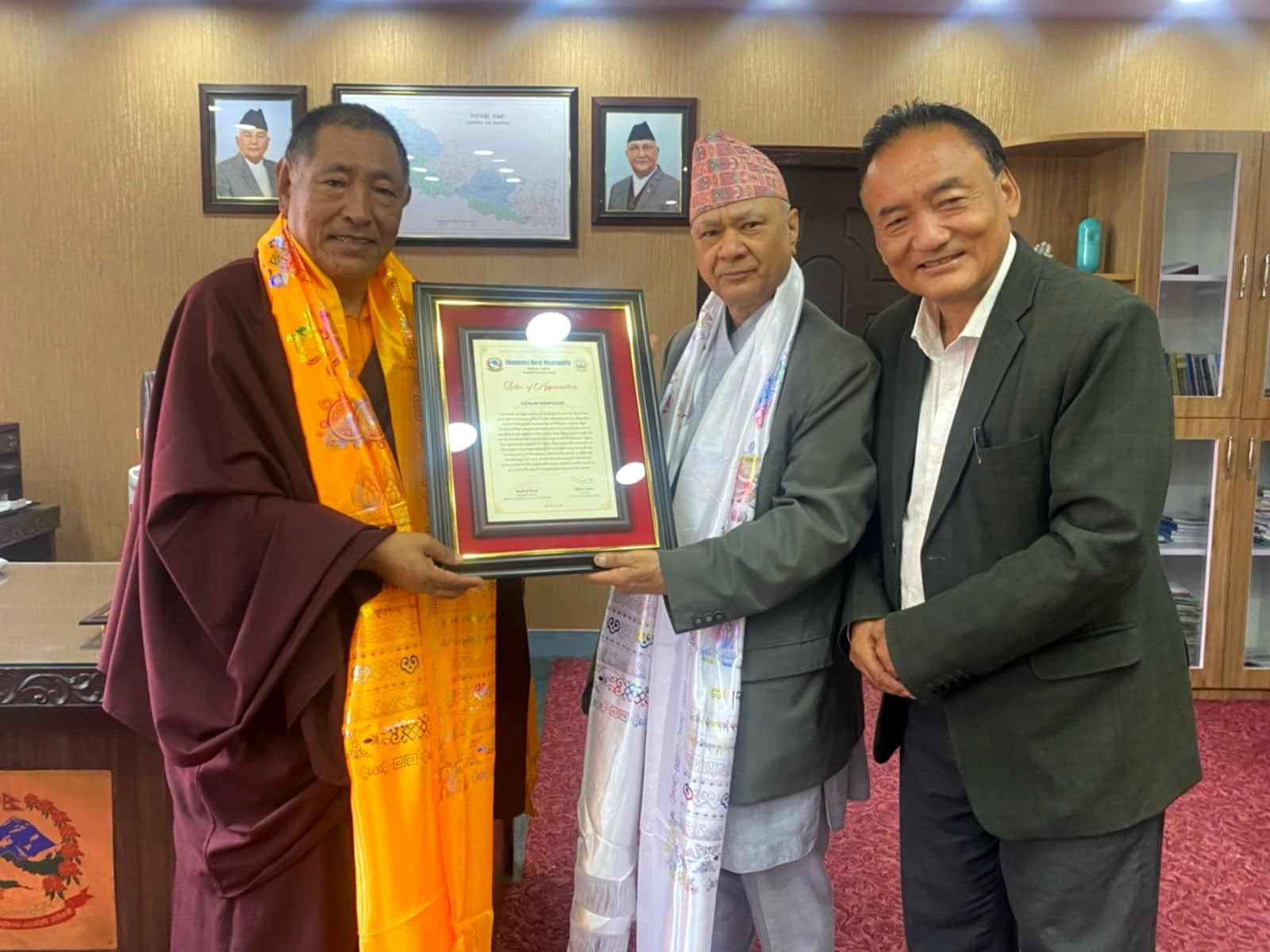 सम्मान कार्यक्रममा बिद्यालयको तर्फबाट व्यवस्थापक सोनाम दोर्जे रिम्पोछे र गाउँपालिकाको तर्फबाट पालिका अध्यक्ष लामाको उपस्थिति रहेको थियो ।