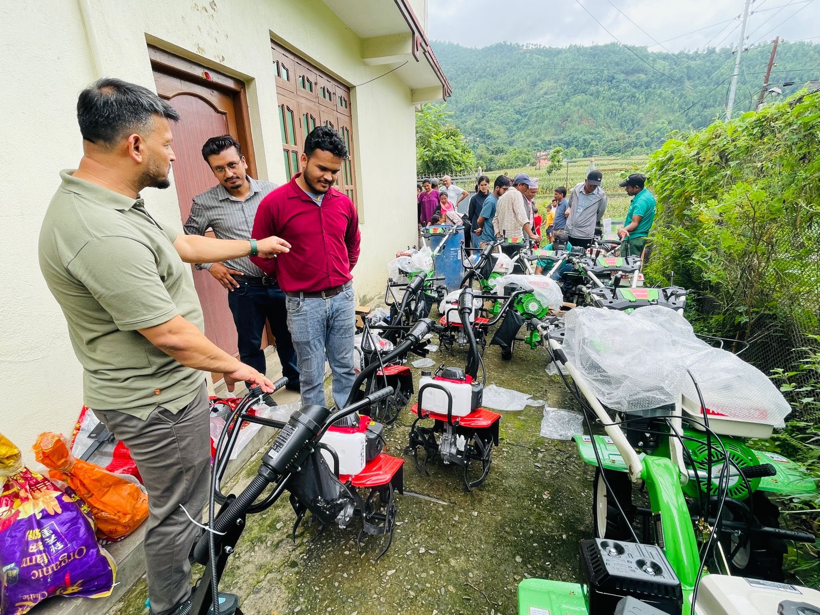 २७ जना किसानहरूलाई पेट्रोलबाट चल्ने हाते ट्याक्टर एक÷एक थान र १० जनालाई मकै गोड्ने मेशिन एक÷एक थान हस्तान्तरण गरिएको हो । किसानहरूलाई विदुर नगरपालिकाका मेयर राजन श्रेष्ठले ती सामग्रीहरू हस्तान्तरण गर्नुभएको हो ।