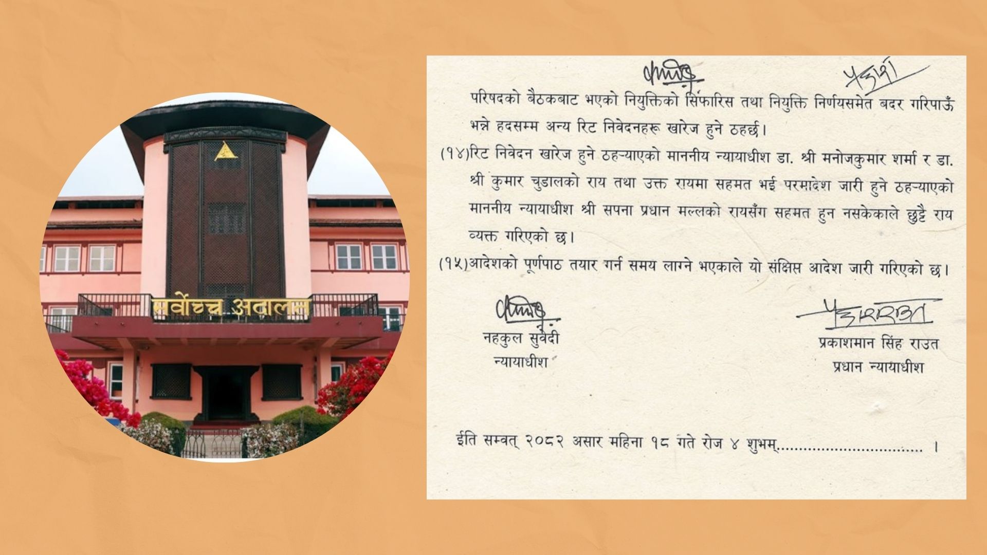 बुधबार मध्यरातमा संवैधानिक इजलासको बहुमतले रिट खारेज गर्दै ५२ संवैधानिक पदाधिकारीहरूको नियुक्ति सदर गरेको हो ।