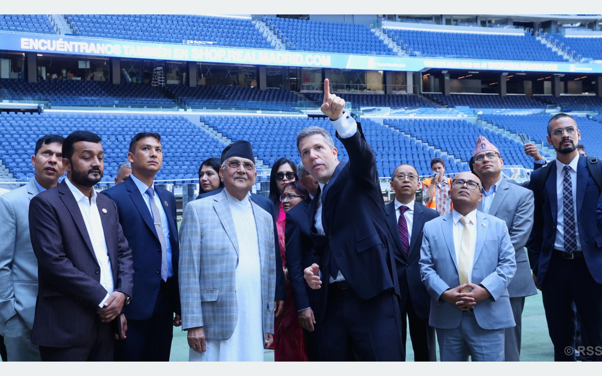 मेड्रिड(स्पेन) – प्रधानमन्त्री केपी शर्मा ओलीले स्पेनको मेड्रिडस्थित विश्व प्रसिद्ध फुटबल क्लब रियल मेड्रिडको सान्टियागो बर्नाबाउ रङ्गशालाको आज अवलोकन भ्रमण गर्नुभएको छ ।