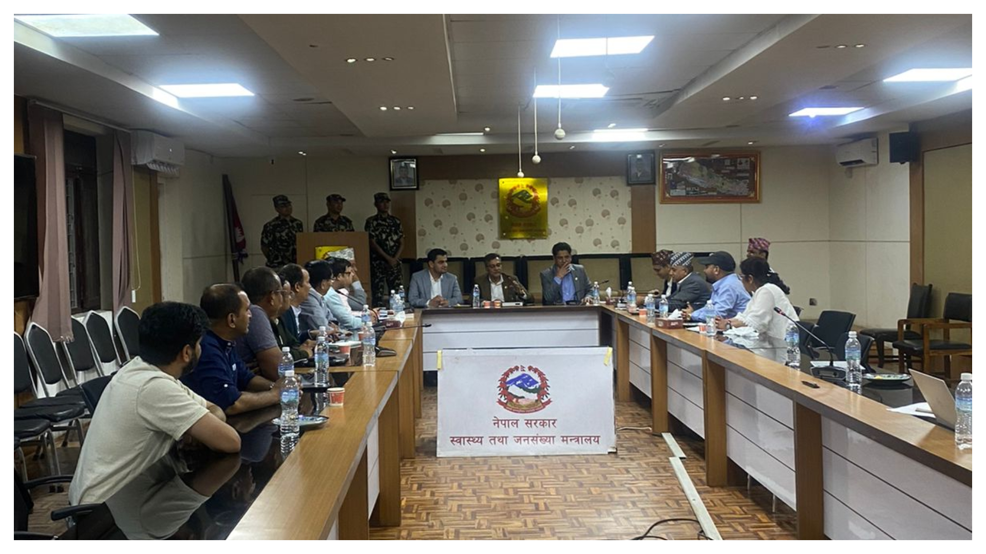 स्वास्थ्य तथा जनसङ्ख्या मन्त्रालयमा सङ्घका प्रतिनिधिसहित स्वास्थ्यमन्त्री प्रदीप पौडेल, कानुन, न्याय तथा संसदीय मामिलामन्त्री अजयकुमार चौरसिया र उद्योग, वाणिज्य तथा आपूर्तिमन्त्री दामोदर भणडारीबीच आज वार्ता भएको थियो ।