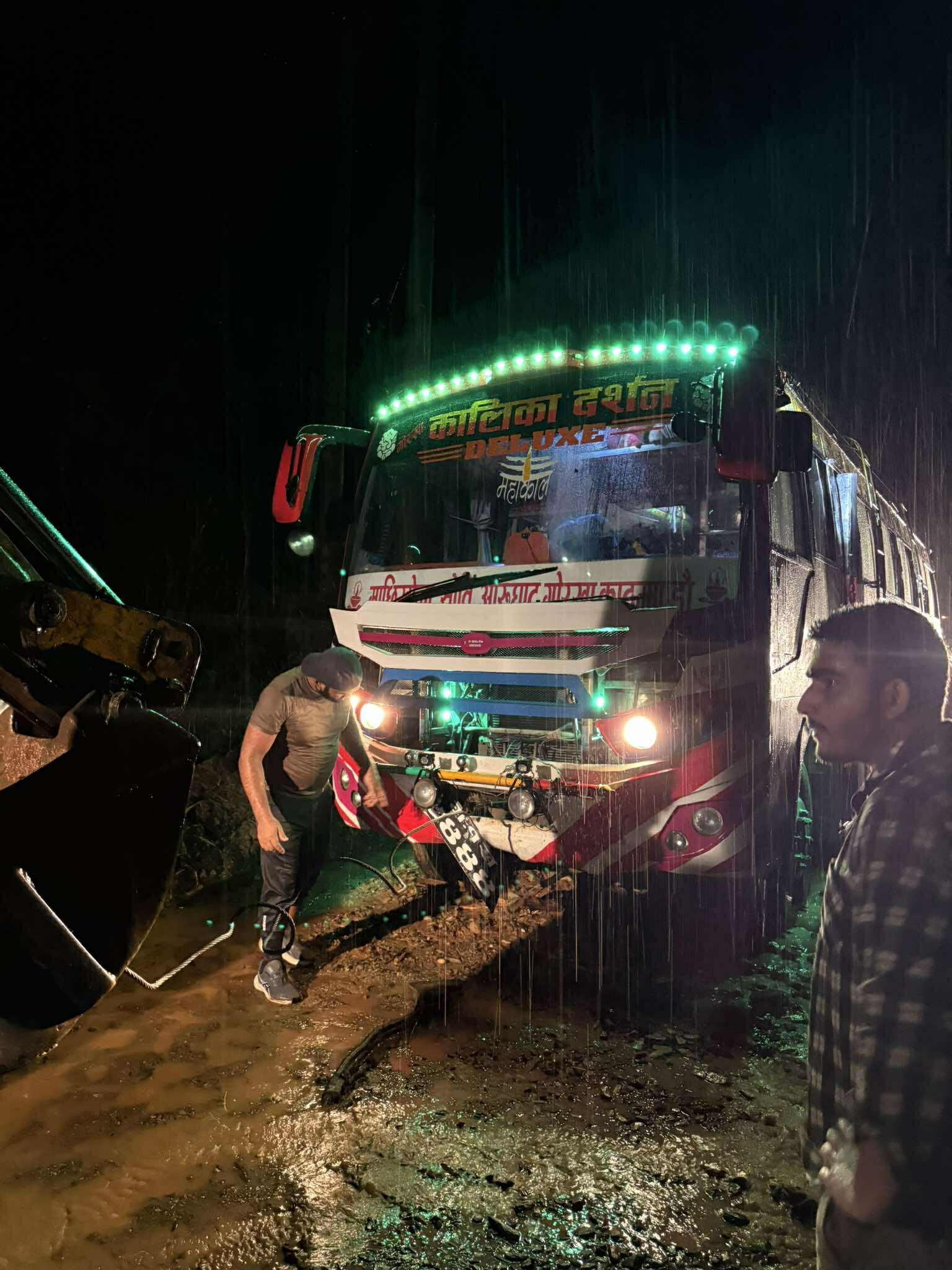 बस निकाल्न राती नै यातायात कम्पनीले जेसिबी मेशिन प्रयोग गरेर बिहान ४ बजे मात्र पहिरोबाट सकुशल उद्धार गरिएको सदस्य बानियाँले बताउनुभयो ।
