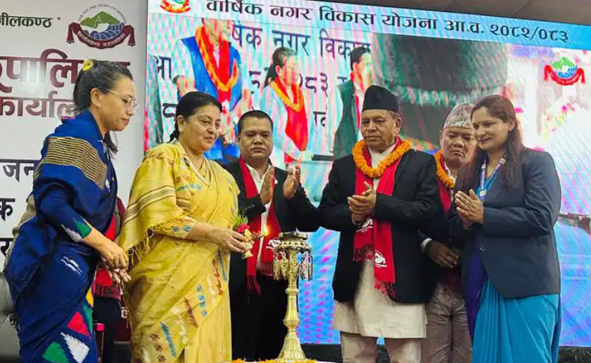 बुढानीलकण्ठ नगरपालिकाको आज आयोजना गरेको आ.व. २०८२/८३ को वार्षिक नगर विकास योजना तथा आ.व. २०८१/८२ को आर्थिक सर्वेक्षण सार्वजनिक कार्यक्रमा बोल्दै पूर्व राष्ट्रपति भण्डारीले स्वाधीन, सबल र आत्मनिर्भर अर्थतन्त्र निर्माणमा स्थानीय तहको ठूलो भूमिका महत्व पूर्ण हुने बताउनु भयो ।