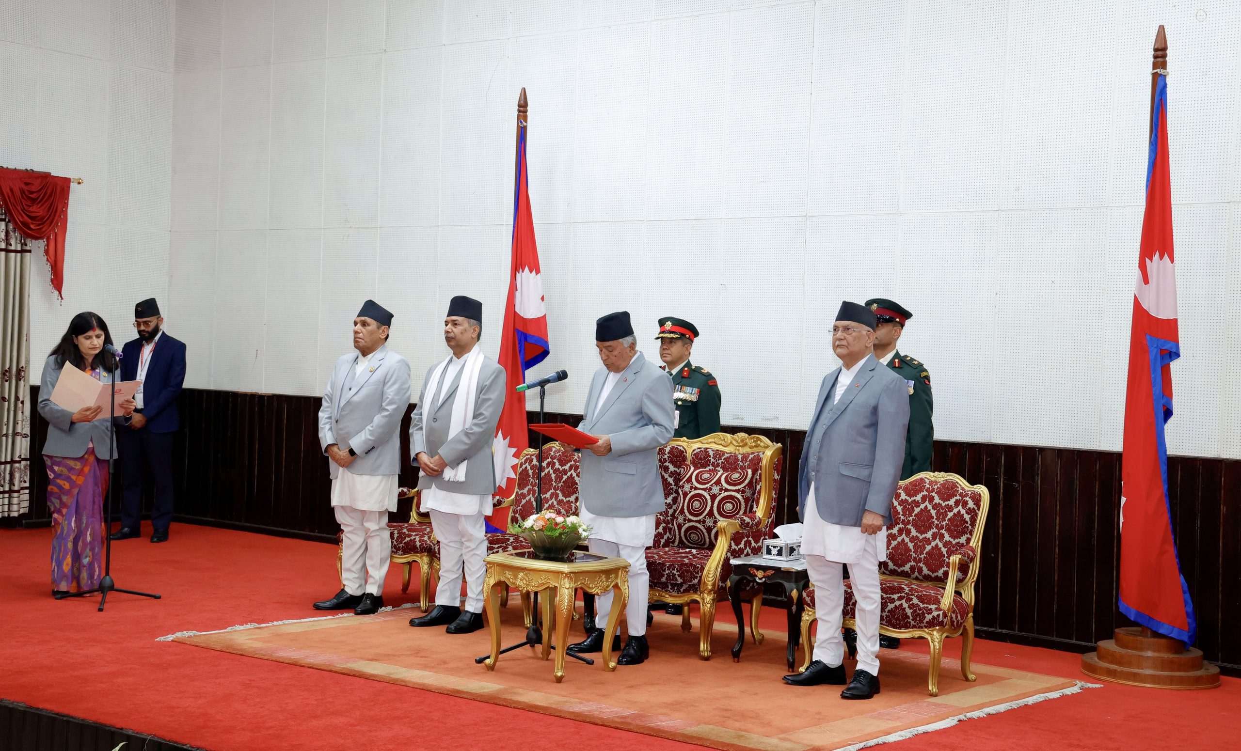 राष्ट्रपति पौडेलसमक्ष नवनियुक्त मन्त्री न्यौपानेको शपथ