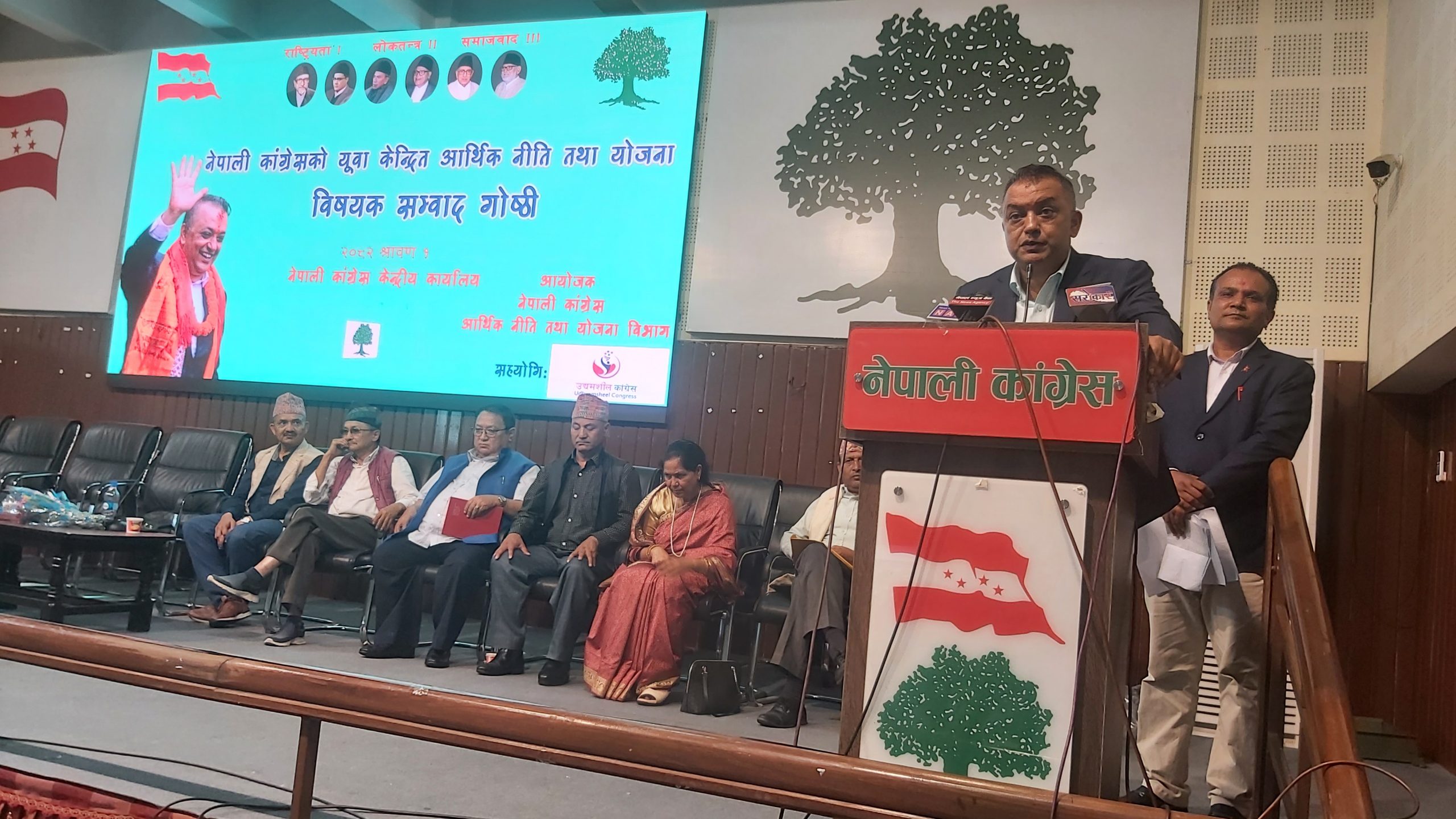 कांग्रेसको आर्थिक नीति तथा योजना विभाग प्रमुख प्रा डा गोविन्दराज पोखरेलले युवा केन्द्रित आर्थिक नीतिका बारेमा धारणा राख्नुहुँदै राज्य अभिभावक बनेर सम्भावना र अवसरलाई प्रोत्साहन गर्नुपर्नेमा जोड दिनुभयो ।