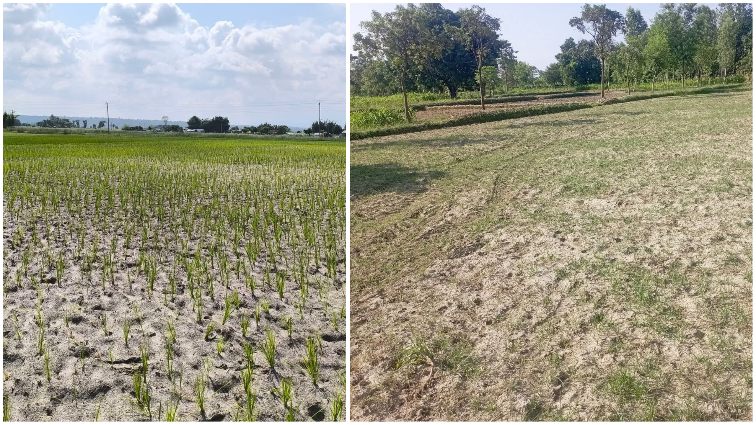 लगातार वर्षा नहुँदा खेत सुक्खा छन्, जसले रोपाईंमा ढिलाइ गराएको हो । धनुषा, सर्लाही, सिरहा, महोत्तरी लगायतका जिल्लामा पानीको स्रोत सुकेपछि किसान गहिरो संकटमा छन् । न त पर्याप्त सिंचाइ सुविधा छ, न त वैकल्पिक उपाय अपनाइएको छ । बोरिङबाट पानी निकाल्ने प्रयास पनि सफल हुन सकेको छैन ।