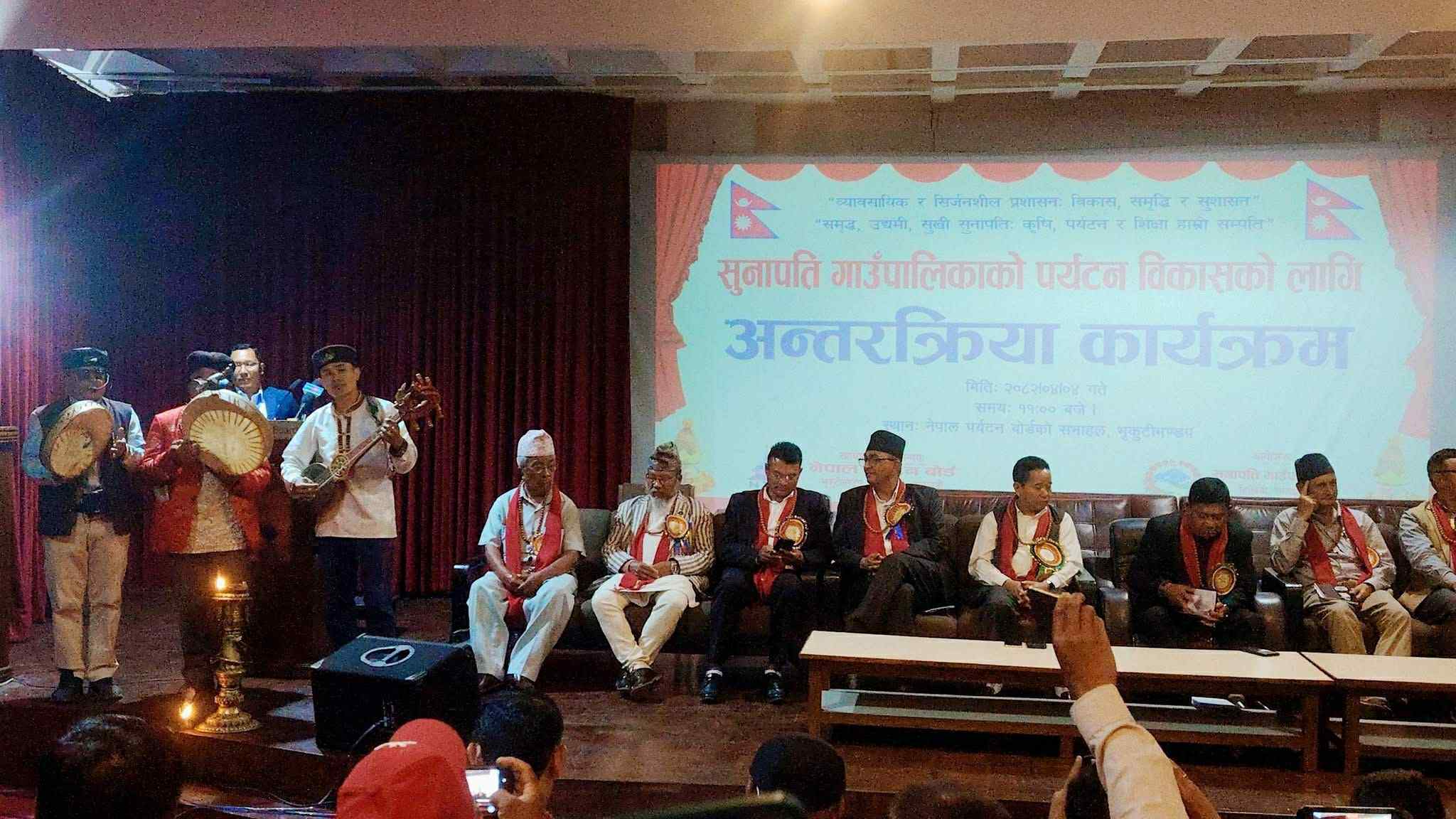 पर्यटन क्षेत्रका विकासका लागि गाउँपालिकाले आर्थिक वर्ष २०८०-८१ मा एक करोड ५० लाख रुपैयाँ बजेट विनियोजन गरी सुनापति डाँडा आसपासका क्षेत्रमा विभिन्न पर्यटकीय पूर्वाधरहरु निर्माण गरिएको जनाएको छ । कार्यक्रममा सुनापति गाउँपालिकाको पर्यटनसम्बन्धी श्रब्यदृश्य सामग्री प्रस्तुत गरिएको थियो भने डम्फु र टुङ्गनाका साथ तामाङ कलाकारको विशेष प्रस्तुतिकरण गरियो ।