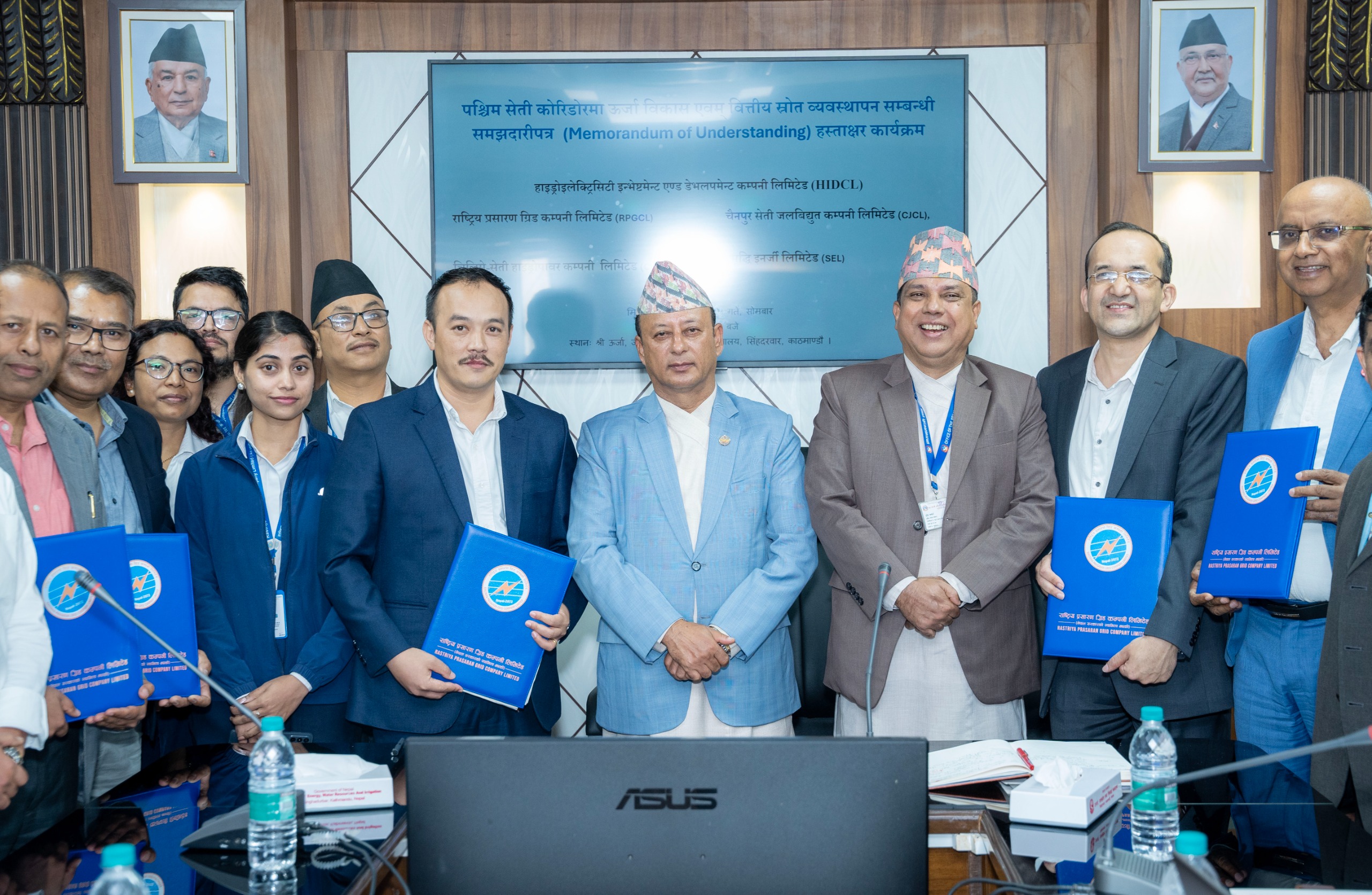 पश्चिम सेती कोरिडोर अन्तर्गतका जलविद्युत् आयोजना र प्रसारण पूर्वाधार निर्माणमा सहकार्य गर्ने उद्देश्यले पाँच प्रतिष्ठित संस्थाहरू—हाइड्रो इलेक्ट्रिसिटी इन्भेस्टमेन्ट एण्ड डेभलपमेन्ट कम्पनी लिमिटेड (HIDCL), राष्ट्रिय प्रसारण ग्रिड कम्पनी लिमिटेड (RPGCL), चैनपुर सेती जलविद्युत् कम्पनी लिमिटेड (CJCL), चिलिमे सेती हाइड्रोपावर कम्पनी लिमिटेड (CSHC) र समृद्धि इन्जी लिमिटेड (SEL) बीच आपसी समझदारीमा हस्ताक्षर भएको हो।