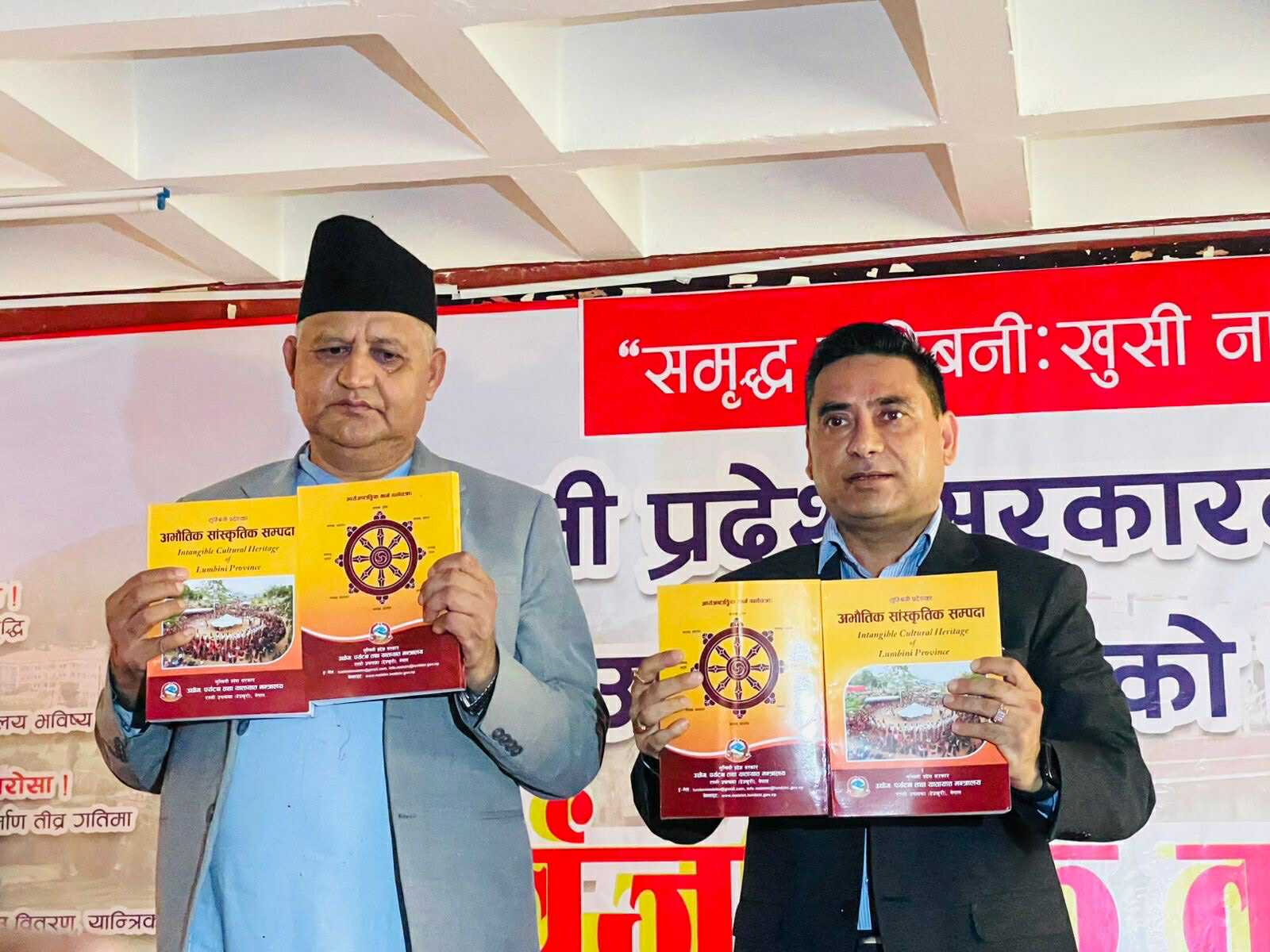 यस्तै मुख्यमन्त्री आचार्य र उद्योग पर्यटन तथा यातायात मन्त्री प्रचण्ड विक्रम न्यौपानेले संयुक्तरुपमा अभौतिक सांस्कृतिक सम्पदाहरूको पुस्तक विमोचन गर्नु भएको छ ।
