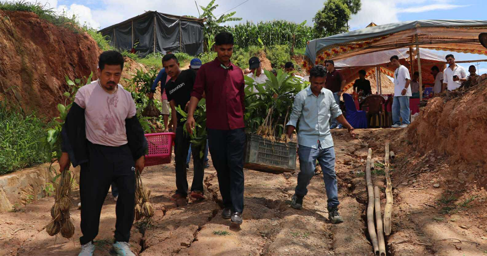 काभ्रेको बालुवास्थित नयाँ गाउँ जग्गा विकास आयोजनामा वृक्षरोपण