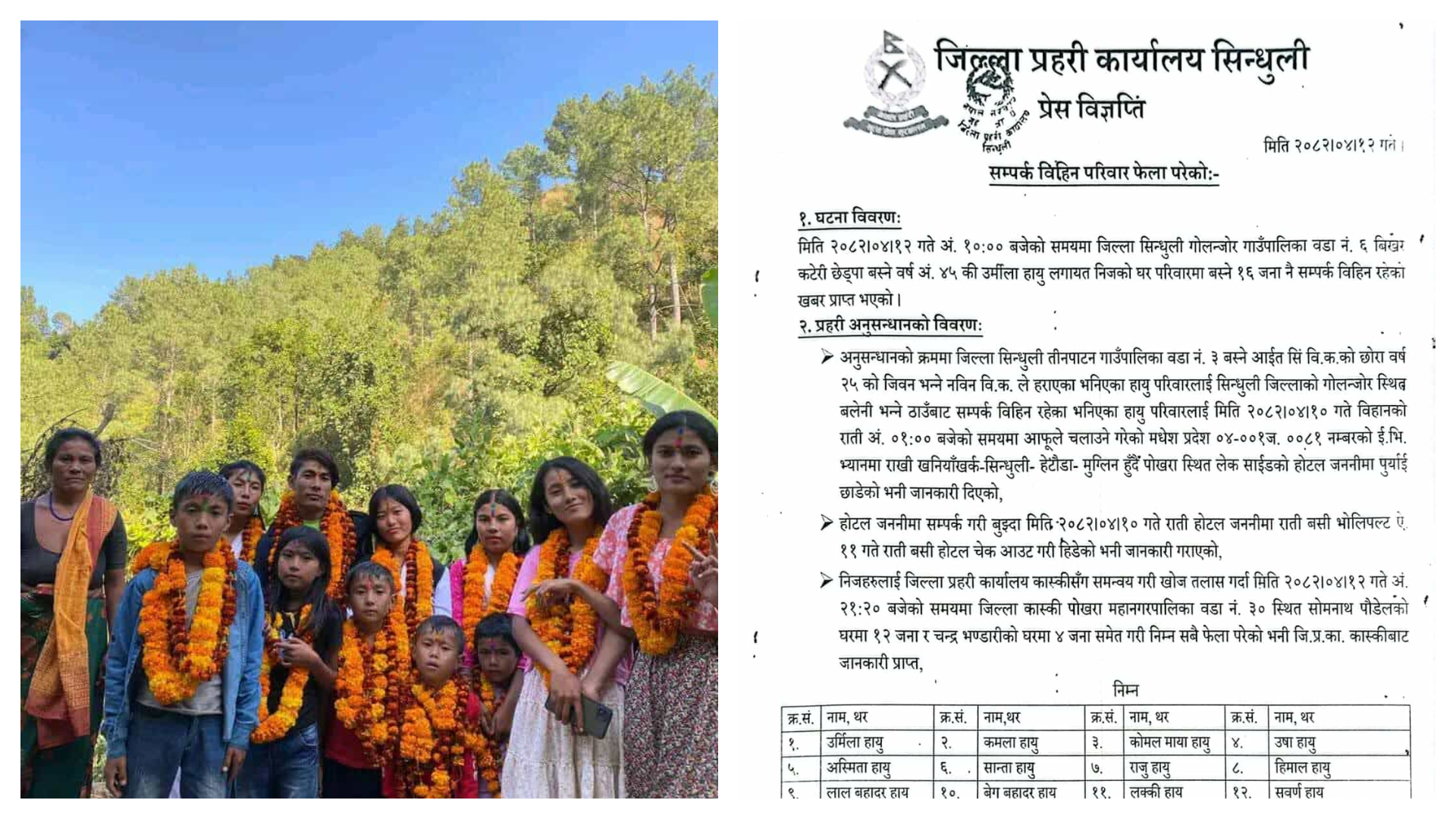 सिन्धुलीबाट हराएका हायु परिवारका सबै १६ जना पोखरामा फेला परे
