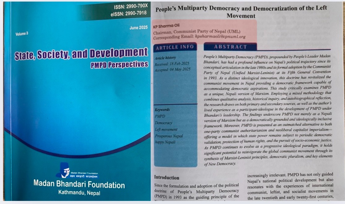 मदन भण्डारी फाउण्डेशनको अंग्रेजी जर्नलमा प्रधानमन्त्रीको लेख– जबजबारे के के छन् कुरा ?
