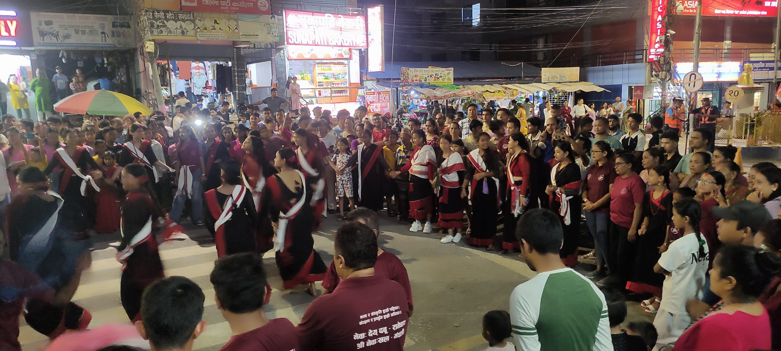 मन्थली बजार नजिकैको भिमसेन मन्दिरमा जम्मा भएका नेवारी समुदायका मानिसहरुले मन्दिरमा पुजा गरेर सगुन खाई लाखे नाच निकालेका हुन् ।