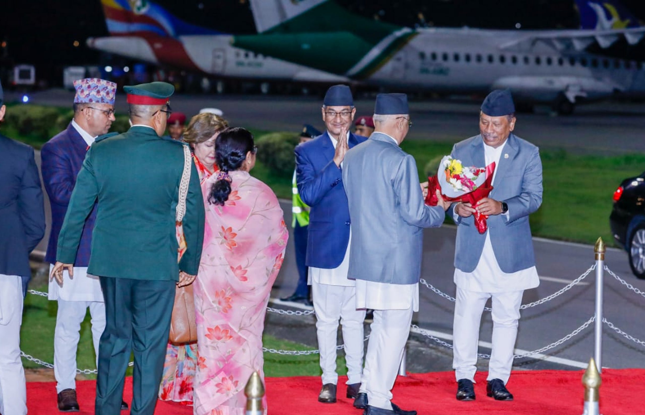 त्रिभुवन अन्तर्राष्ट्रिय विमानस्थलको अति विशिष्ट कक्षमा उपप्रधानमन्त्री एवम् शहरी विकासमन्त्री प्रकाशमान सिंह, गृहमन्त्री रमेश लेखक, परराष्ट्रमन्त्री डा आरजु राणा देउवा, संस्कृति, पर्यटन तथा नागरिक उड्डयनमन्त्री बद्री पाण्डेले प्रधानमन्त्रीलाई विदाई गर्नुभयो ।