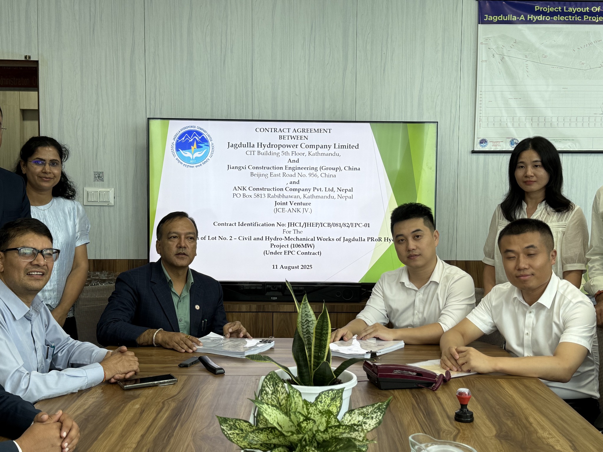 कूल १०६ मेगावाट क्षमताको सो आयोजना निर्माणका लागि निर्माण व्यवसायीसँग सम्झौता भए लगत्तै मार्ग प्रशस्त भएको प्रवद्र्धक कम्पनी जगदुल्ला हाइड्रोपावर कम्पनी लिमिटेडका प्रमुख कार्यकारी अधिकृत सञ्जय सापकोटाले जानकारी दिनुभयो । उहाँले जगदुल्ला हाइड्रोपावर र जेसीई÷एएनके जेभीबीच निर्माणसम्बन्धी सम्झौता भएको जानकारी दिनुभयो ।