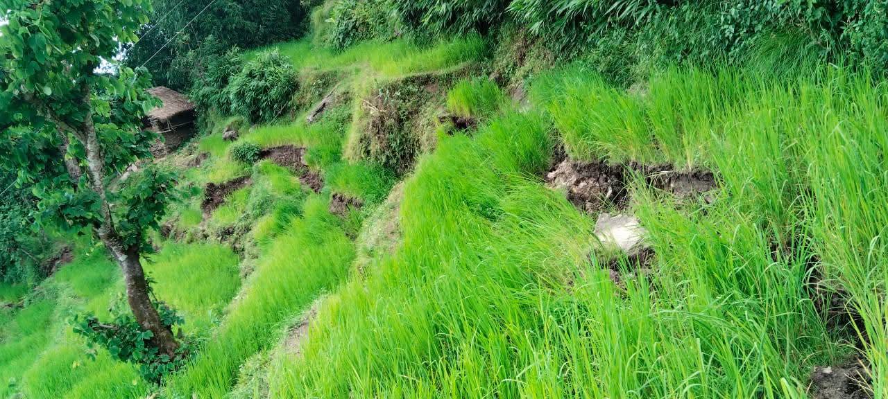 बस्ती मुनिको जमिन धाँजा फाटेर पहिरो चल्न थाल्यो, छ्यालुङ लाक्टाङ गाउँका ७ घर जोखिममा