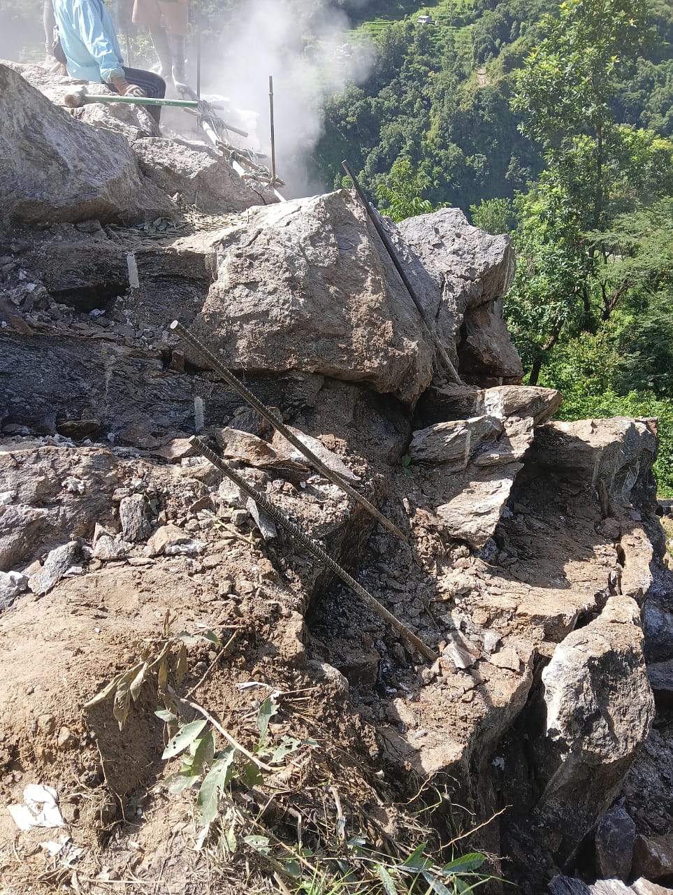 बर्सातका कारण उक्त ढुङ्गो निरन्तर तल सरिरहेको थियो । फुटाउन थाल्नु भन्दा अगाडि पनि निरन्तर सरिरहेको थियो ।