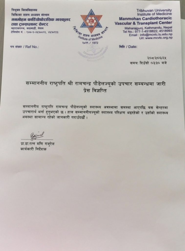 राष्ट्रपति पौडेल अस्पताल भर्ना, अवस्था सामान्य