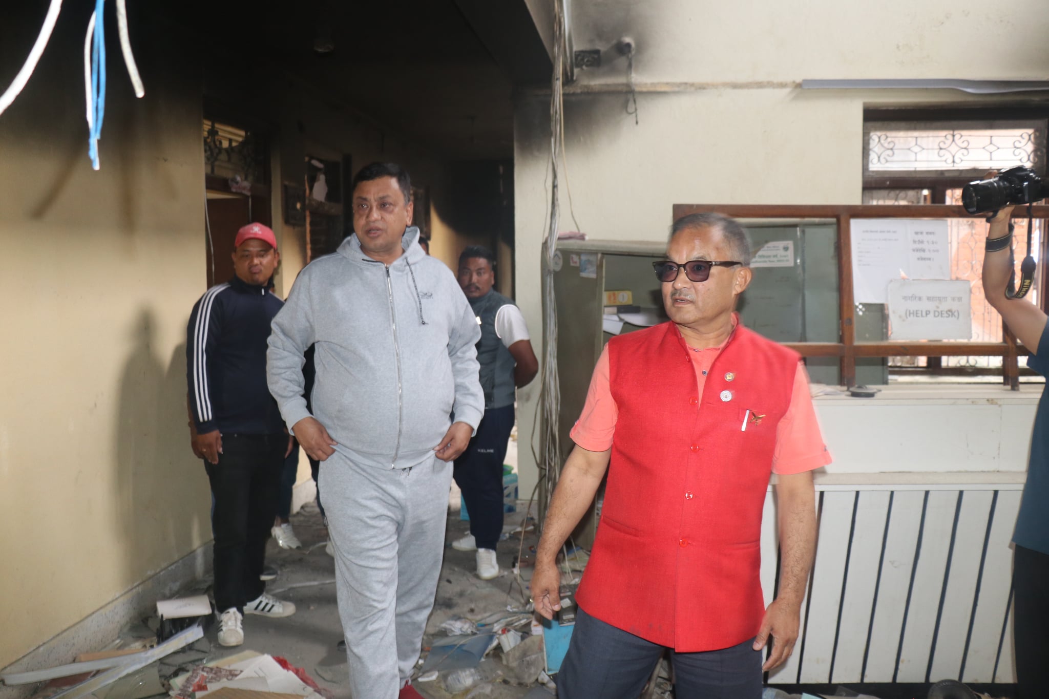 मुख्यमन्त्री बानियाव्दारा आन्दोलनका क्रममा क्षति पुगेका कार्यालयको निरीक्षण