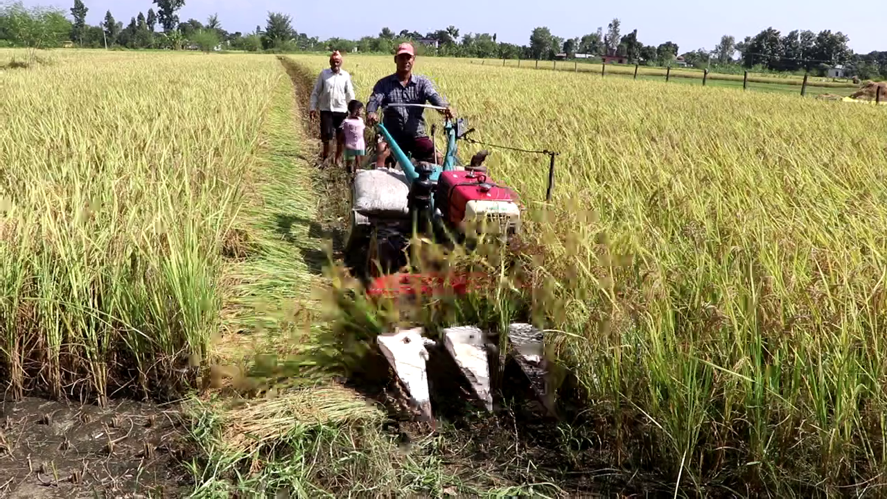 कञ्चनपुरमा धान काट्न मेशिनको प्रयोग बढ्दै